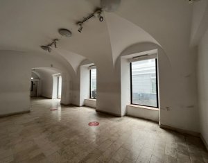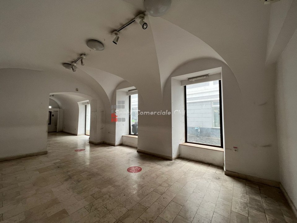 Inchiriere spatiu comercial cu potential deosebit. Situat in plin centrul orasului intr-o zona cu vad comercial intens si expunere deosebita. 6 vitrine generoase, 3 sali de vanzare, mic depozit si grup sanitar in suprafata de 135mp utili Dispune de centrala termica proprie si incalzire in pardoseala