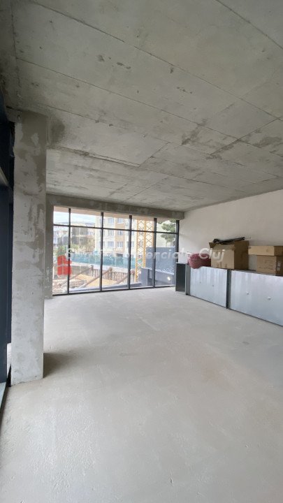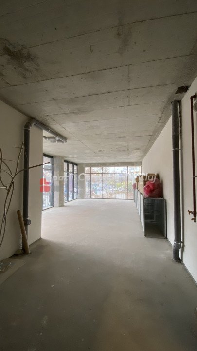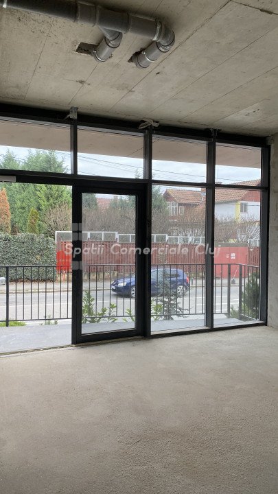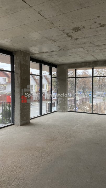 Spațiul are suprafață vitrată, se află la parter și are atât intrare separată de la stradă, cât și intrare din bloc.