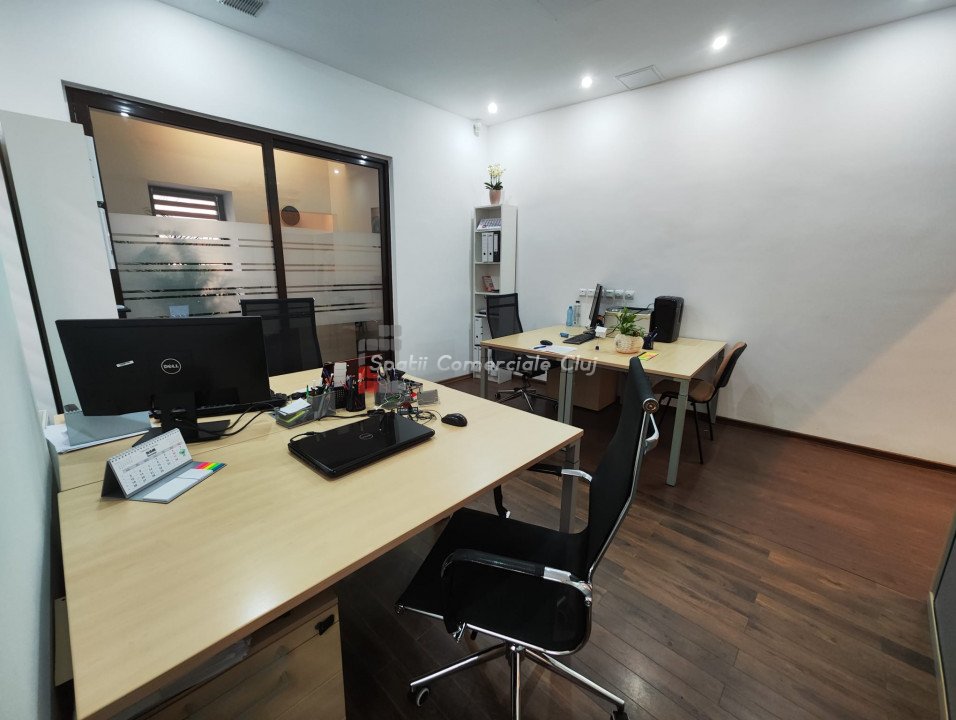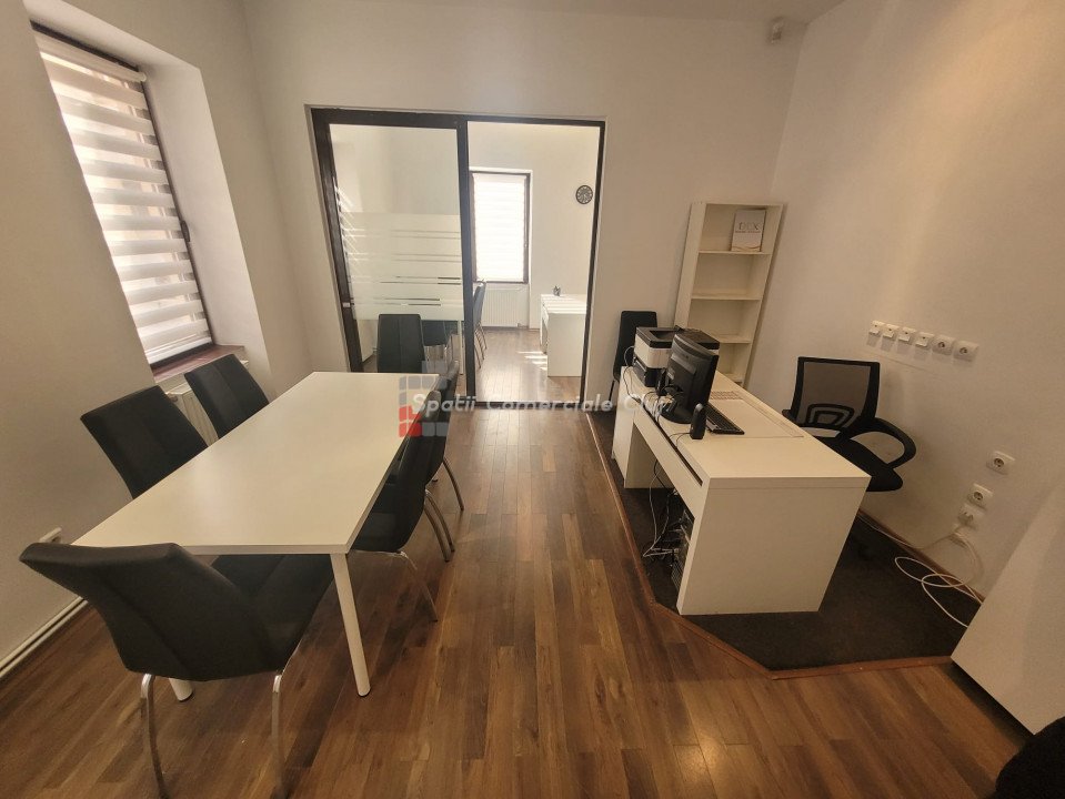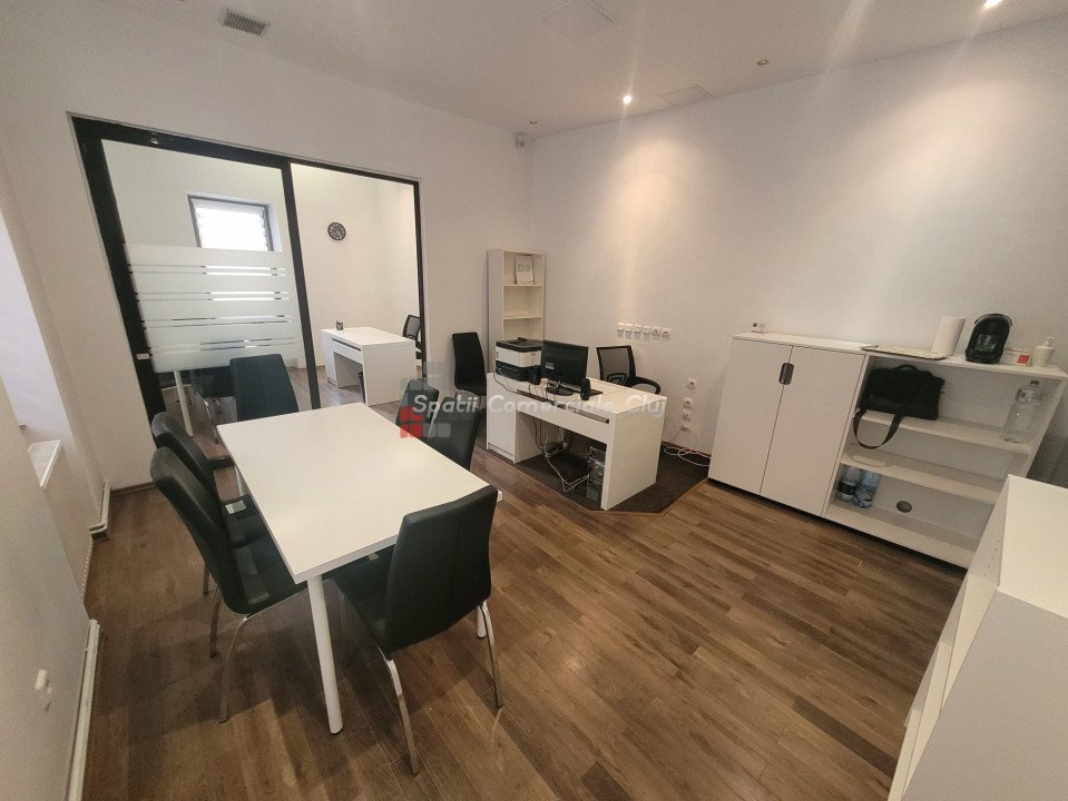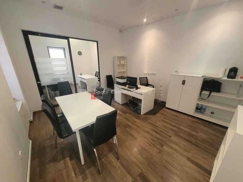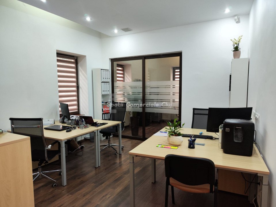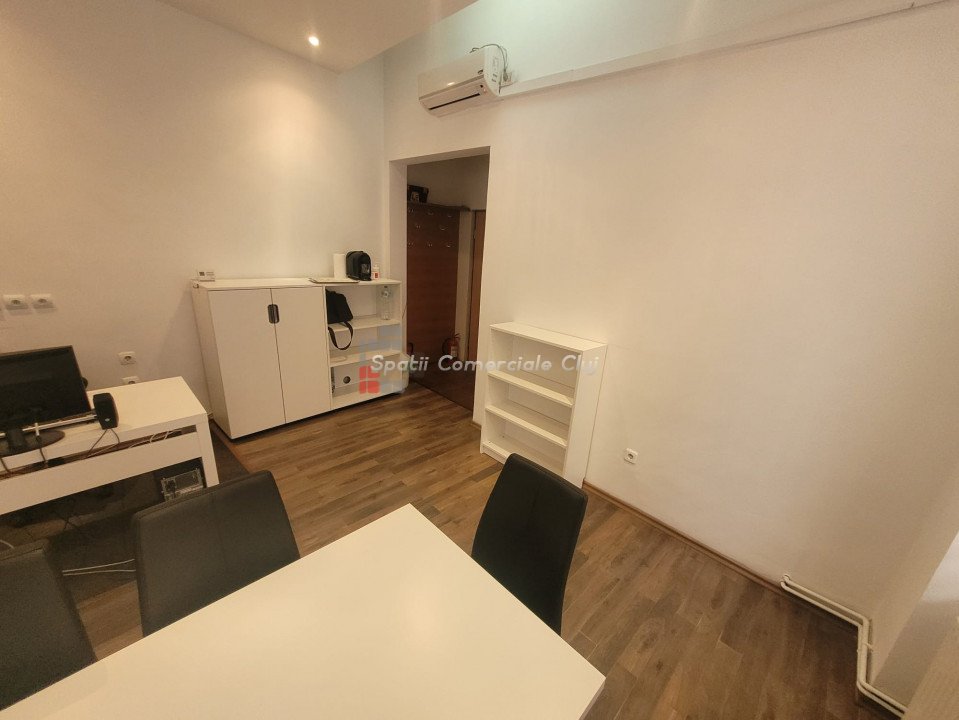 Inchiriere spatiu pentru activitati de birou, situat ultracentral in spate la Cinema Victoria pe str. Iuliu Maniu Parter inalt, suprafata de 34mp utili, o compartimentare din sticla, hol de intrare si grup sanitar. Aer Conditionat, centrala termica, sistem de alarma. Se inchiriaza NEMOBILAT. Locatie foarte buna , in apropiere de ANAF, Tribunal si Prefectura Cluj