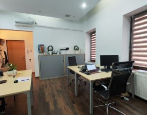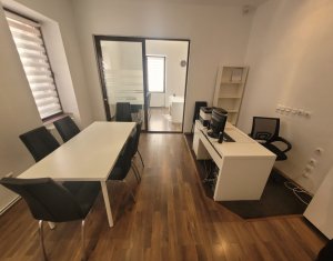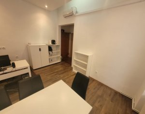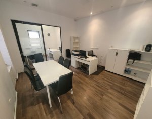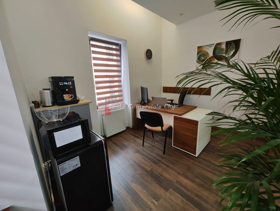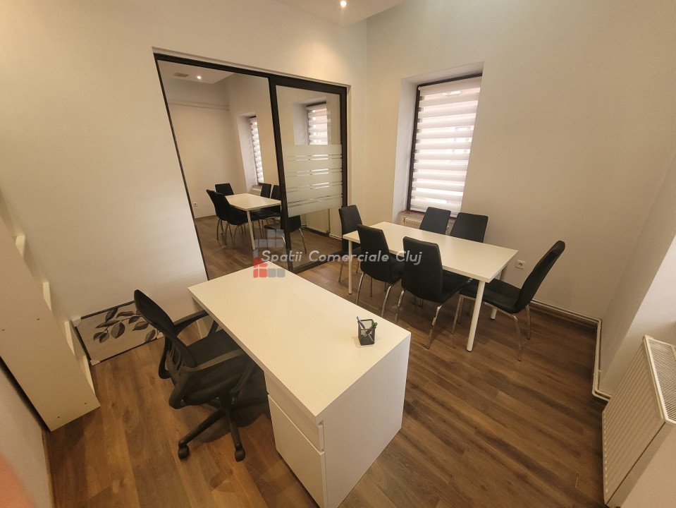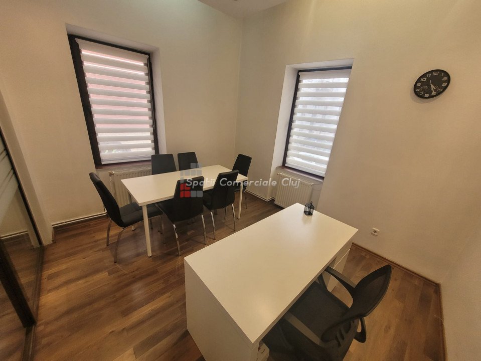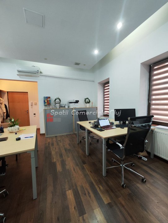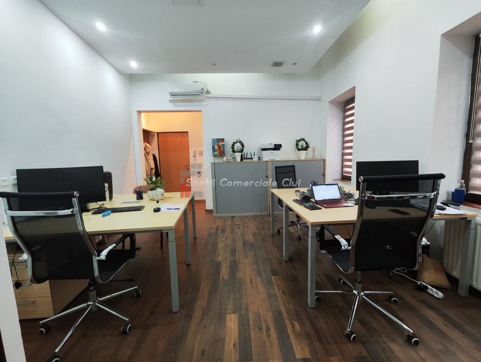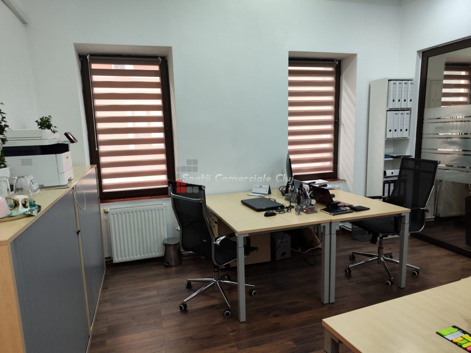 Inchiriere spatiu pentru activitati de birou, situat ultracentral in spate la Cinema Victoria pe str. Iuliu Maniu Parter inalt, suprafata de 34mp utili, o compartimentare din sticla, hol de intrare si grup sanitar. Aer Conditionat, centrala termica, sistem de alarma. Se inchiriaza NEMOBILAT. Locatie foarte buna , in apropiere de ANAF, Tribunal si Prefectura Cluj