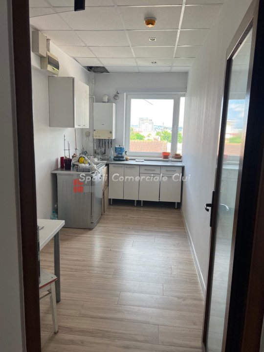 Se inchiriaza spatiu pentru prestari servicii sau medicale (destinatie medicala in CF) Situat intr-un imobil comercial din zona Kaufland Manastur si calea Manastur. Spatiul are o suprafata de 131mp, compus din sala open space 48mp, 2 birouri (36mp si 29mp) bucatarie, 2 toalete, hol si 2 balcoane. Sistem de supraveghere video, incalzire cu CT si Aer Conditionat, senzori de fum, inaltime libera 263cm. 2 locuri de parcare incluse in chirie. Suplimetar 35E/buc+TVA