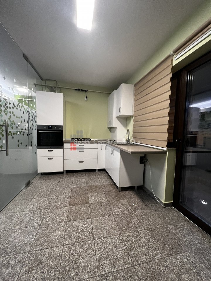 Spatii Comerciale Cluj va propune spre inchiriere un apartament cu 4 camere, situat str Eugen Ionesco in cartier Europa Apartamentul este finisat modern, 2 bai, 3 camere decomandate si un living spatios, terasa generoasa si dispune de o gradina de 150mp. Se inchiriaza nemobilat. Ideal pentru firme. Include o boxa de aproximativ 45mp la demisol si loc de parcare in fata blocului. Imobilul este monitorizat prin camere de supraveghere, bine intretinut si foarte linistit.