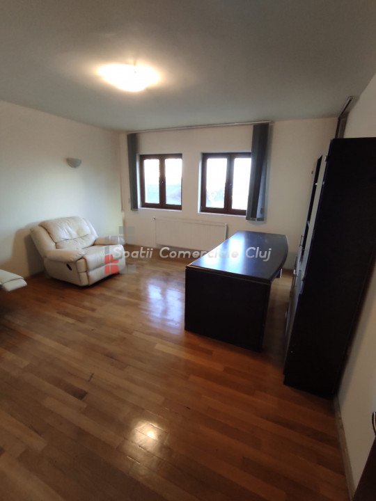 Se inchiriaza spatiu de birou sau servicii situat pe Calea Turzii, aproape de Sigma. Spatiul se afla intr-o cladire moderna, este compus dintr-o incapere cu trecere foarte luminoasa, mare, 2 camere separate si 2 grupuri sanitare. Este potrivit activitatilor de birou sau servicii. Dispune si de 1 loc de parcare. Pentru mai multe detalii sau programarea unei vizionari, va rog sa ne contactati!
