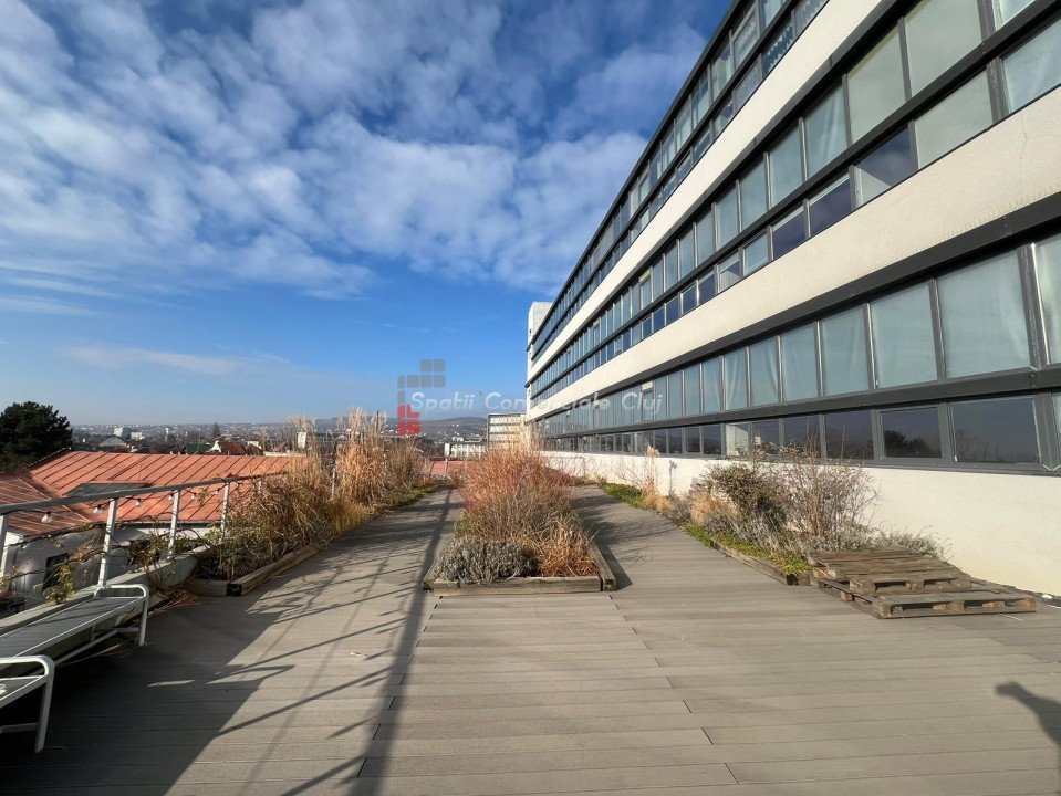 Va propunem spre inchiriere un spatiu de birouri in suprafata de 600 mp, situat in zona Marasti-Farmec, la etajul al doilea-lea in cadrul unui imobil office clasa A, renovat in 2018 pentru a se ridica la inaltele standarde de eficacitate moderne, pe care le necesita companiile mari. Printre acestea amintesc: - sistemul BMS, prin intermediul caruia, spatiul beneficiaza nu doar de monitorizarea facila a consumului de energie, ci si de un consum redus al acesteia, fiind environmentally friendly. - sistem de ventiloconvectoare - iluminat LED - control acces - CCTV Spatiul generos se inchiriaza la cheie, complet mobilat, fiind dotat cu pardoseala flotanta, cablaj date-voce integral, zona de recreere si o bucatarie. Totodata, incaperile beneficiaza de multa lumina naturala, dispunand de o terasa privata de 200 mp. Totodata, zona in care este amplasat imobilul este excelenta, dat fiind ca in proximitatea sa se afla multiple statii de autobuz, importantul centrul comercial din piata Marasti, banci, cafenele si restaurante. Exista locuri de parcare disponibile la cerere, contra cost. Pentru mai multe detalii va rugam sa ne contactati.