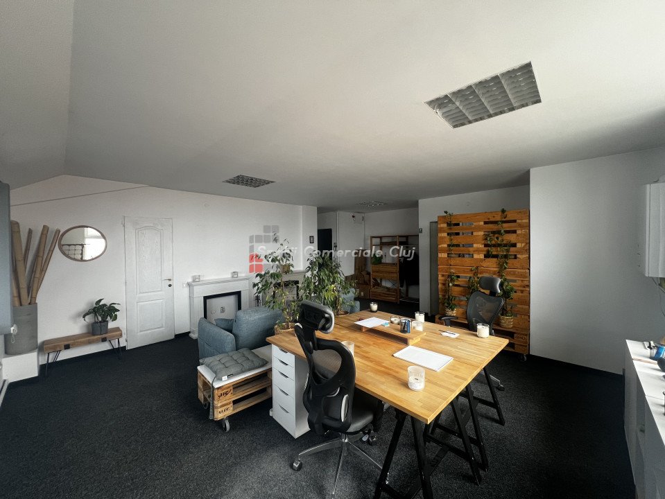 Exclusivitate! Spatii Comerciale Cluj are placerea de a va propune inchirierea unui spatiu de birouri preluat in regim de exclusivitate, situat in zona pod Ira. Spatiul este dispus pe doua niveluri, etaj 2+ mansarda, si se inchiriaza cu mobilier contracost ori nemobilat. Acesta este finisat cu mult bun gust si este compartimentat dupa cum urmeaza. Etaj 2: 130mp - 3 incaperi spatioase - 2 spatii tehnice - 1 baie Mansarda 84 mp - 1 incapere spatioasa unde este momentam bucataria si zona depozit - o sala de sedinte Spatiu este situat chiar la Podul Ira, fiind foarte facil accesul cu mijloacele de transport in comun spre centrul orasului. Totodata pretul de inchiriere 8 eur/mp este unul foarte corect in conditiile actuale ale pietei imobiliare Spatii de parcare incluse in pretul de inchiriere! Va rugam sa ne contactati pentru detalii si vizionari!
