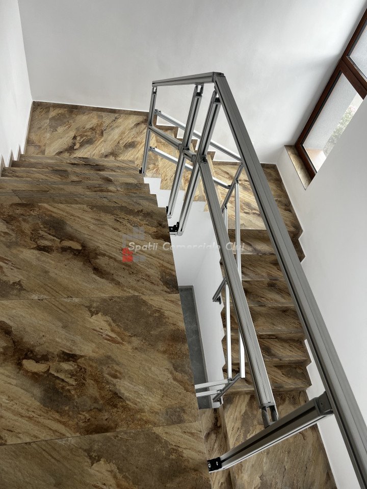 Va propun spre inchiriere imobil individual cu expunere la bulevardul Muncii si curte cu locuri de parcare. Suprafata 210mp pe doua nivele, si este compus la parter din showroom cu perete din rigips pentru partea de depozitare, grup sanitar si incapere anexa. La etaj o incapere foarte spatioasa si luminoasa open space, grup sanitar si birou separat sau sala de mese cu bucatarie. Accesul la etaj se face pe intrare separata de parter. Curtea din fata acomodeaza parcare pentru 6 masini cu poarta automata si un totem publicitar cu autorizatie de la primarie. Imobilul are finisaje de calitate, incalzire pe gaz si centrala proprie pe fiecare etaj, curent mono si trifazic, supraveghere video cu sistem de alarma, cablaj internet, Aer Conditionat. Destinatie comerciala in CF