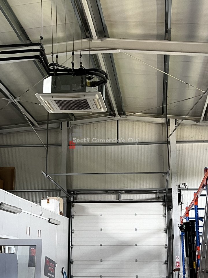 Va propun spre inchiriere spatiu industrial, hala pe structura metalica cu panouri sandwich, situata in zona industriala Baciu, langa Napolact. Teren total 1900mp, ingradit si pavat in totalitate, cu rigole de scurgere, statie de incarcare auto, poarta automata Hala are suprafata de 650mp la sol, usa de acces sectionala, beton elicopterizat, inaltime 7m. La mezanin sunt birouri, grupuri sanitare si vestiare in suprafata de 145mp Curent trifazic din retea 50kW. Panouri fotovoltaice de 30kW. Panouri tub pentru apa calda 10 buc. Exista apa de retea dar imobilul foloseste momentan apa din foraj. Centrala termica pe peleti de o capacitate de 40kW cu functie de inverter pentru aer rece si aer cald prin ventiloconvectoare. Pentru informatii suplimentare si vizionari, va rog sa ma contactati.