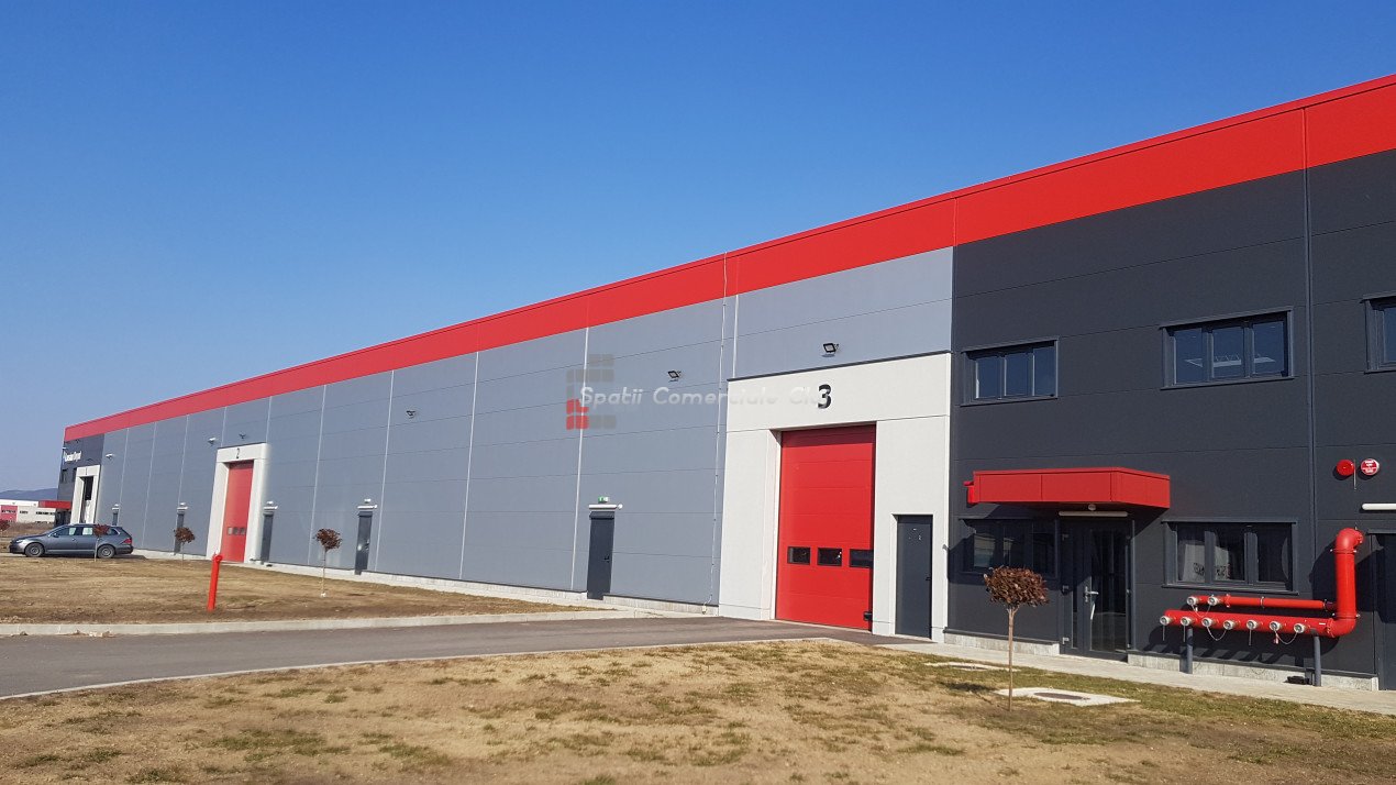 Va prezentam spre inchiriere spatiu pentru productie sau depozitare, situat in parcul industrial Jucu. Are urmatoarele specificatii: - hala constructie noua, suprafata la sol 905mp, H=6m, la cele mai noi standarde - aviz ISU, iluminat LED, incalzire, luminatoare, usi acces automate, hidranti - podea beton elicopterizat, usa drive-in si usa pietonala, centrala de incendiu, sprinklere, trape de fum - exista structura metalica gata instalata pentru zona de birouri, vestiare, dusuri si oficiu - taxa de service de 1 eur/mp - preturile exprimate nu contin TVA.
