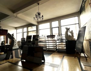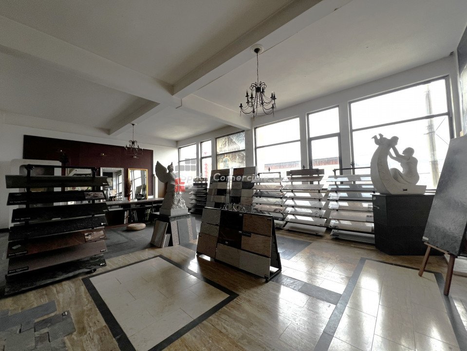 Spatiu in suprafata de 130mp compus din 2 incaperi generoase, situat la etaj intr-o cladire comerciala din zona Hornbach, str. Campina. Geamurile sunt spre strada, accesul se face din curtea de incinta a imobilului (din spate) Finisaje din marmura la sol, inaltime utila 4m, multa lumina naturala. Potrivit pentru multiple activitati de creatie, microproductie, etc.