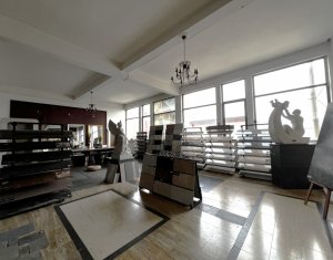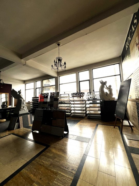 Spatiu in suprafata de 130mp compus din 2 incaperi generoase, situat la etaj intr-o cladire comerciala din zona Hornbach, str. Campina. Geamurile sunt spre strada, accesul se face din curtea de incinta a imobilului (din spate) Finisaje din marmura la sol, inaltime utila 4m, multa lumina naturala. Potrivit pentru multiple activitati de creatie, microproductie, etc.