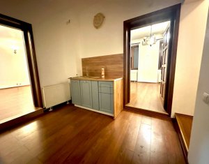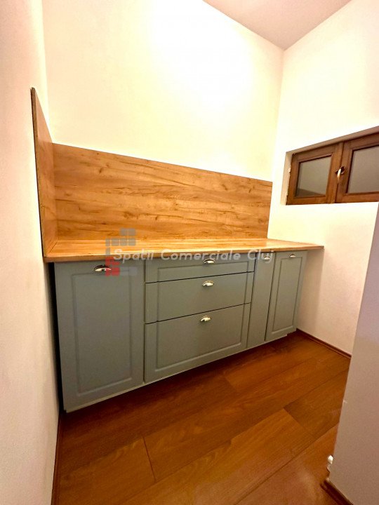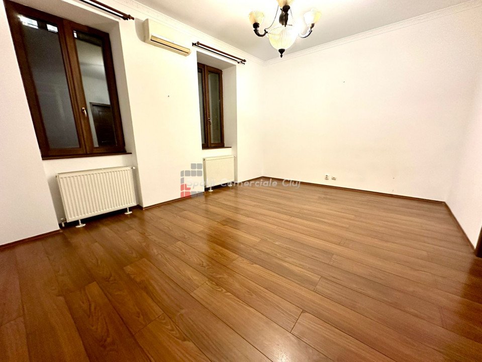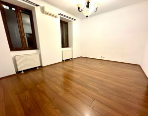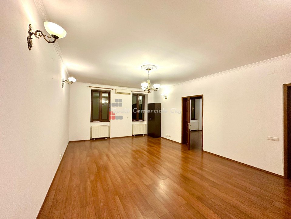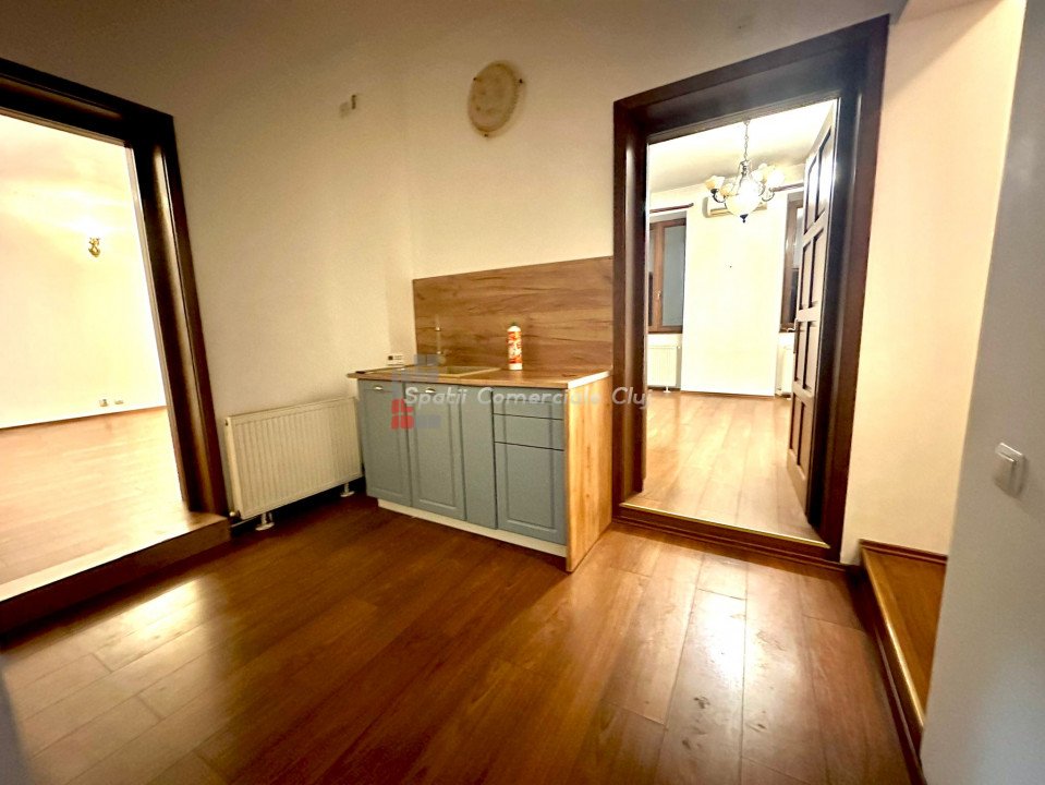 Se inchiriaza spatiu pentru birou sau servicii situat central in spate la Sora Shopping. Suprafata de 75mp compusa din hol de intrare, zona de receptie/sala de asteptare, 2 incaperi spatioase spre strada, chicineta, baie si mica debara. Finisaje de calitate, parchet masiv in fiecare incapere, centrala pe gaz, geamuri termopan, aer conditionat.