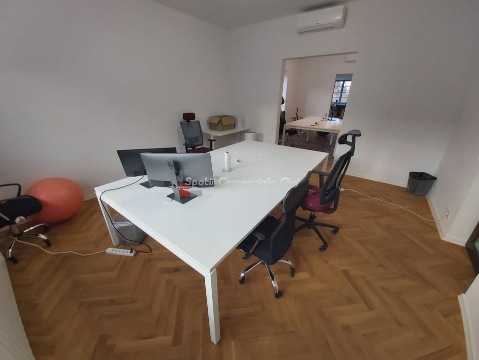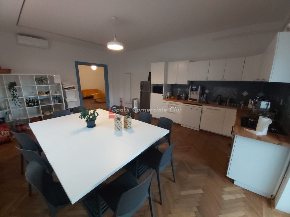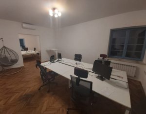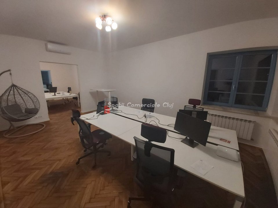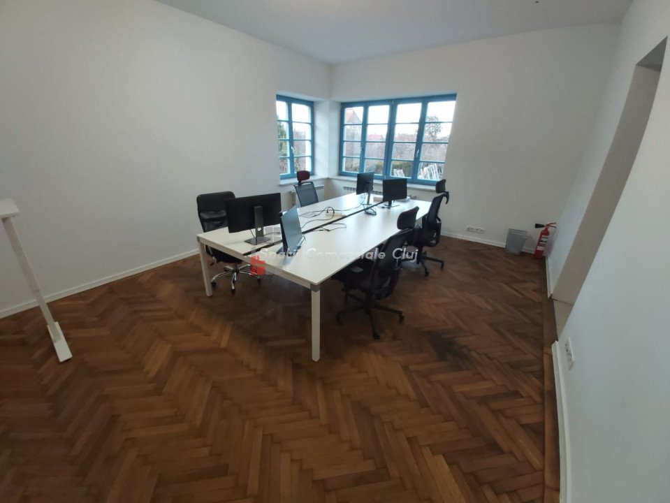 De inchiriat casa in frumosul cartier Andrei Muresanu. Imobilul este din perioada interbelica dar a fost recent renovat si modernizat. Suprafata utila este de aproximativ 400 mp si are un teren de 1000 mp. Regim de inaltime D+P+M. D: accesul se poate face din casa sau pe exterior din curte, compartimentat in 6 incaperi P: 5 camere, bucatarie, 2 bai, terasa M: 3 camere, 2 bai, terasa Parcare proprie pentru aproximativ 10 masini. Casa se preteaza pentru birouri dar poate sa fie folosita si ca locuinta.