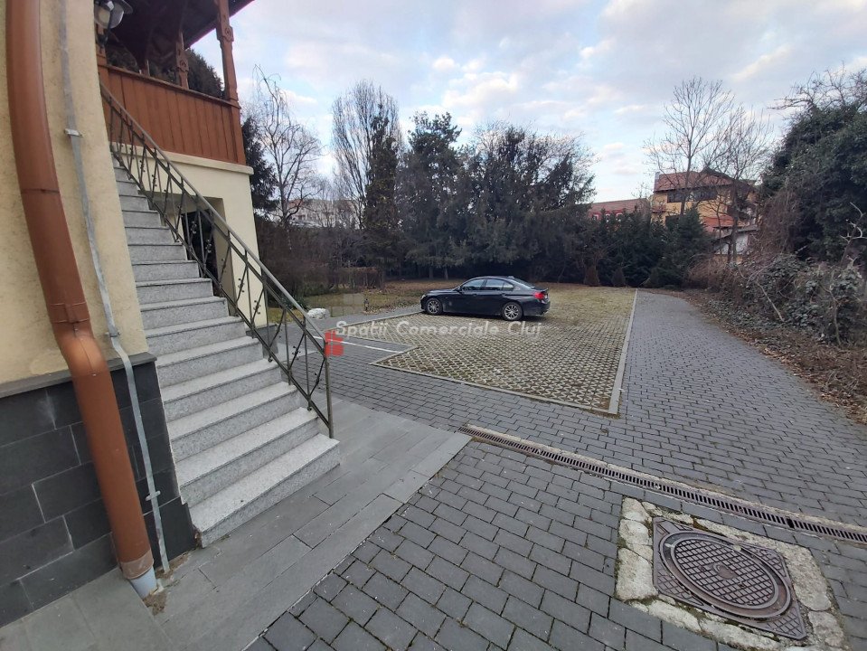 De inchiriat imobil in cartierul Andrei Muresanu, zona centrala, locatie de top. Constructia este din perioada interbelica si este intr-o stare foarte buna. Compartimentare generoasa, 20 incaperi, 3 bai, parcare proprie pentru minim 10 masini. Regim de inaltime S+P+M. Imobilul este polivalent, ideal pentru birouri, consulat, scoala privata sau alte activitati. Pret inchiriere 5000 euro plus tva.