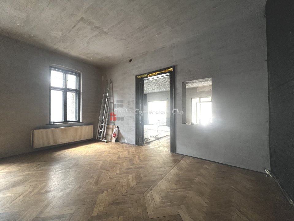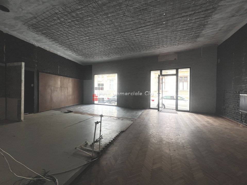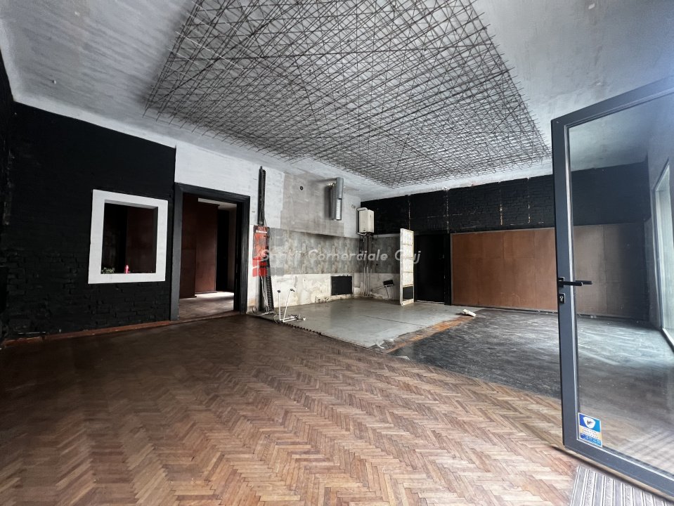 Spatiu Alimentatie Publica, zona piata Muzeului Parter cu intrare directa de pe trotuar, 2 vitrine mari, usa de acces pentru aprovizionare marfa, tavane inalte Suprafata parter 89mp compus din 2 sali mari, grupuri sanitare si acces pe terasa interioara Subsol de 40mp compus din 3 pivnite si grup sanitar (poate fi folosit pentru camera frig, depozit, crama, etc) Terasa interioara in curtea imobilului unde se pot instala 8-10 mese si posibilitate de a fi acoperit cu o pergola Spatiul necesita lucrari de amenajare pentru care se ofera o perioada de gratie pentru care nu se plateste chirie Toate utilitatile disponibile si contorizate separat, inclusiv curent trifazic