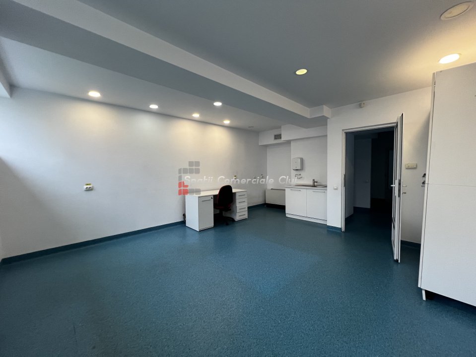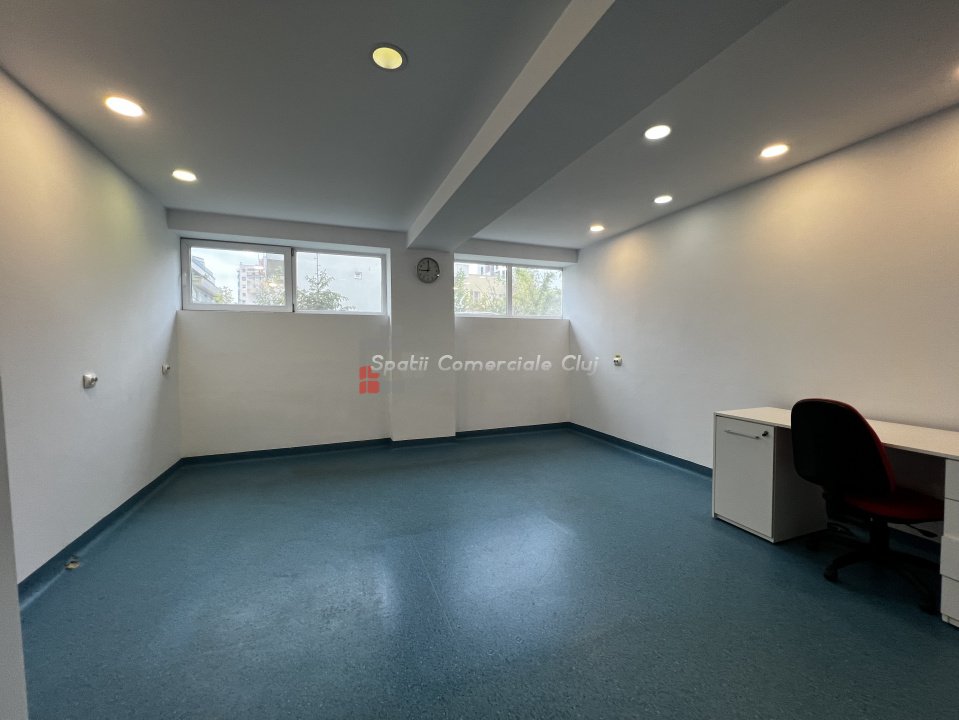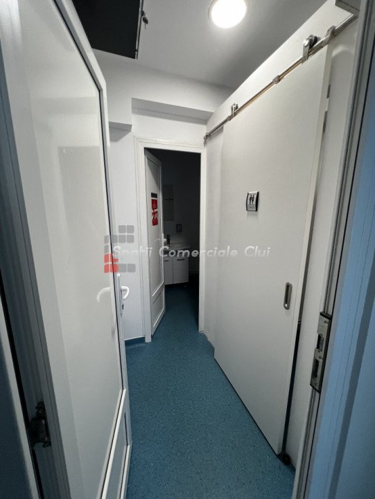 Se inchiriaza spatiu comercial pentru diverse activitati comerciale sau de servicii: tatuaje, barber shop, salon de cosmetica si coafor, activitati medicale, clinici, laboratoare, servicii sau alte activitati comerciale (CF comercial) situat la parterul unui imobil din spatele hotelului Golden Tulip Zorilor si langa liceul Waldorf Suprafata 162mp compus din receptie, birou, vestiar, 4 incaperi de lucru, spatii de depozitare, 2 grupuri sanitare, boxa de curatenie Parter cu intrare din strada, 3 locuri de parcare disponibile in fata spatiului si eventual unul in subteran Vinil pe intreaga suprafata, sistem de alarma, perdea de aer la intrare, sursa de apa si chiuveta in fiecare incapere, iluminat LED, peretii proaaspat vopsiti