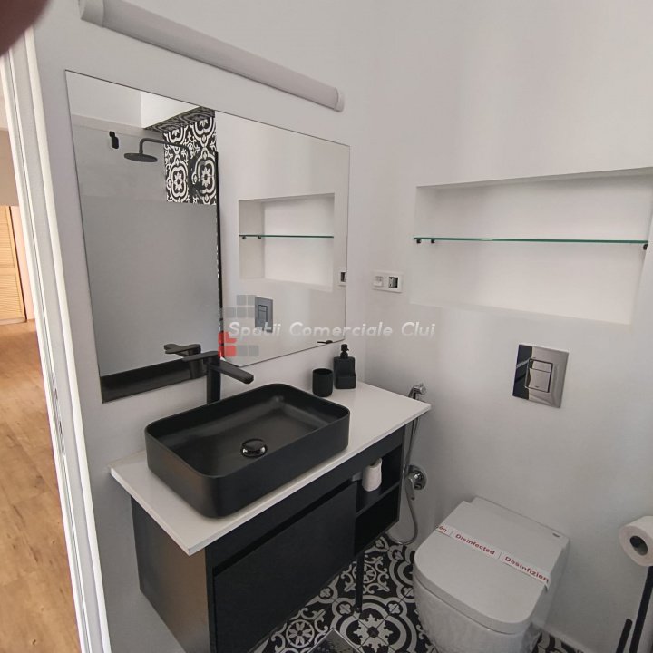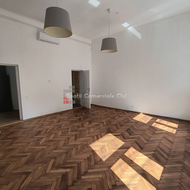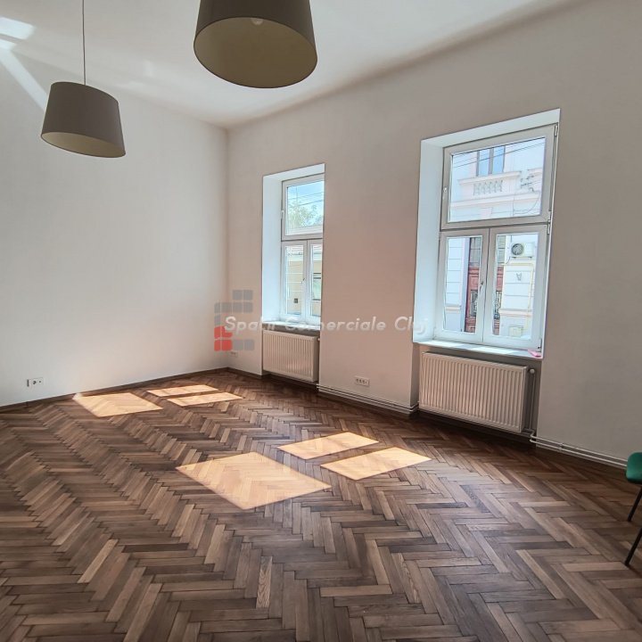 Va oferim spre închiriere un spațiu de birouri modern cu suprafata utila de 85 mp in zona Parcul Central, Cluj-Napoca. Spatiul este ideal pentru firme care caută un sediu funcțional. ? Caracteristici Principale: -Suprafață utilă: 85 mp distribuiți pe parter. Compartimentare: -2 încăperi, -bucătărie complet echipată și hol mare, -2 băi. Dotări: aer condiționat, centrală termică, ferestre termopan, iluminat natural generos. Disponibilitate: imediată ? Locație Excelentă: Situat în zona Centrala în apropierea Parcul Mare și a altor puncte de interes, acest spațiu oferă acces facil către principalele artere ale orașului, fiind ideal pentru birouri, sedii de firmă. Confort: amenajări moderne și facilități care asigură un mediu de lucru plăcut și eficient. Pentru alte detalii si vizionari, nu ezitati sa ne contactati!