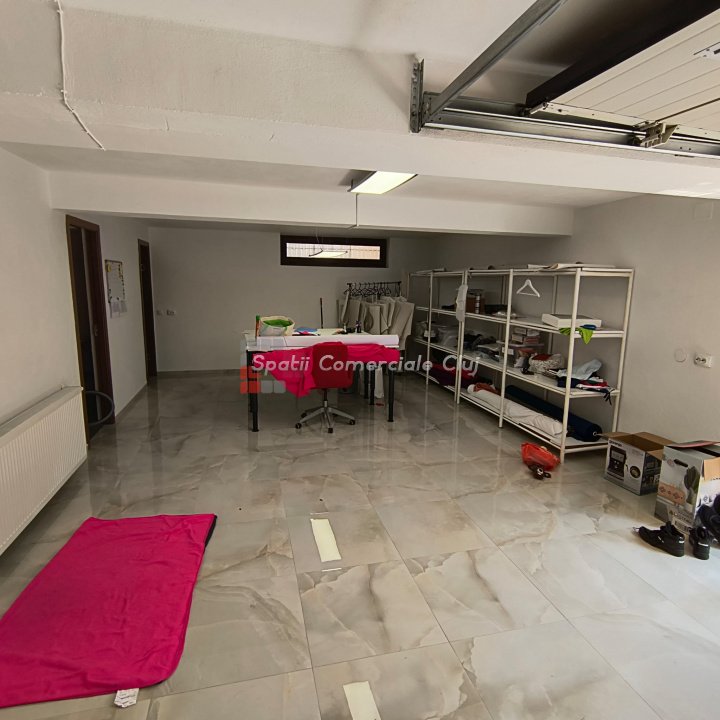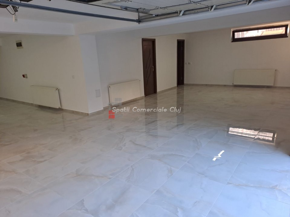 Spatii Comerciale Cluj va ofera spre inchiriere un spatiu aflat la demisolul unei case (garajul), in cartierul Intre Lacuri. Acesta are o suprafata de aproximativ 100 mp si este compartimentat intr-o incapere mare ( open space) de aproximativ 100 mp, un birou si grup sanitar. Spatiul este in stare buna cum se vede si in poze. Are centrala termica proprie si contorizare separata la utilitati. Pentru alte detalii si vizionari, nu ezitati sa ne contactati!