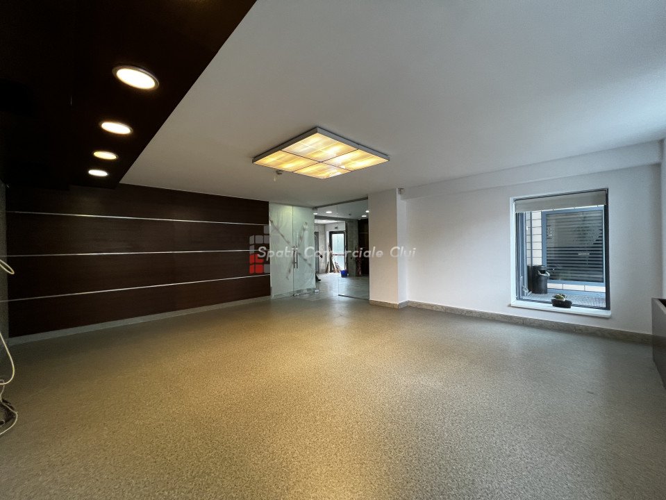 Se inchiriaza spatiu comercial situat la parterul unei cladiri de birouri de pe calea Dorobantilor. Zona este in apropiere de Profi si OMV Marasti cat si de Biblioteca Judeteana Open space, 40mp, curent trifazic, sistem de ventilatie, pardosea din tarket. apa curenta, scurgere. Potrivit pentru activitati de birou sau servicii