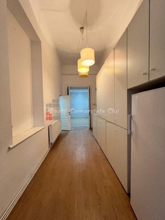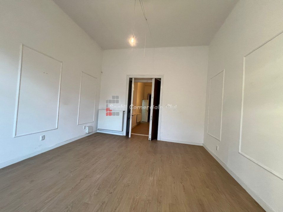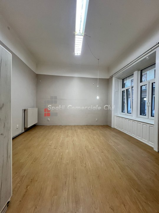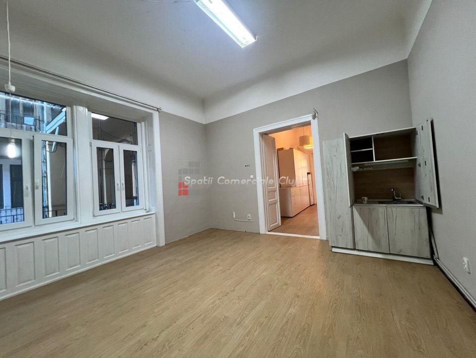 Inchiriere spatiu pentru activitati de birou. Situat in statia regionala CFR, parter inalt cu o incapere spre strada si una spre curte. Suprafata de 62mp utili, impartita in 2 incaperi generoase de cate 24mp fiecare, inaltime 3m85, hol grup sanitar Contorizari separate, sistem de alarma, centrala si calorifere, geamuri termopan.