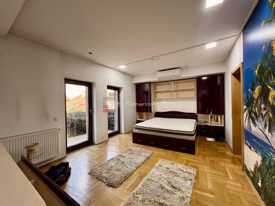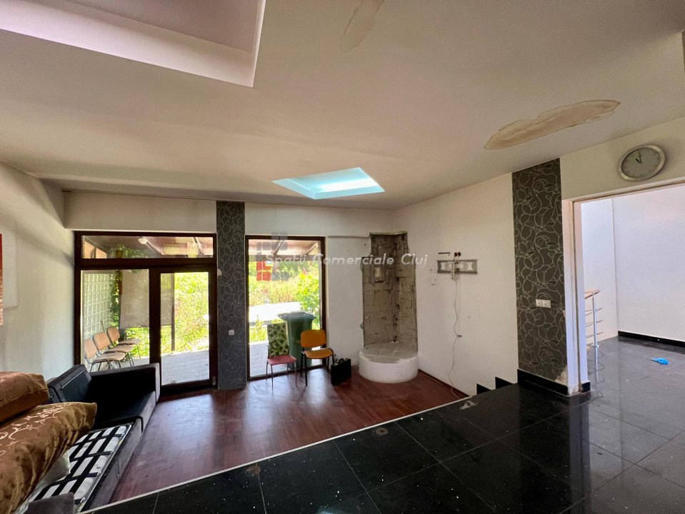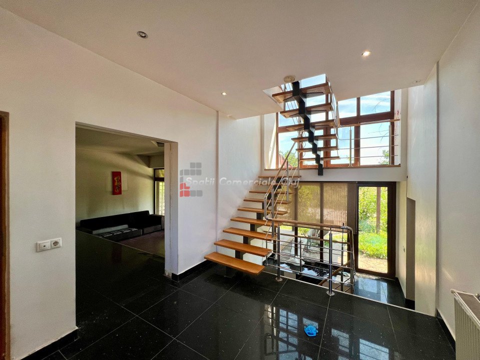Spatii Comerciale Cluj va prezinta spre inchiriere o casa individuala cu curte proprie si gradina, retrasa de la drumul principal, situata in cartierul Europa, zona str. Eugen Ionesco, cu acces din doua directii. Casa este dispusa pe un regim de inaltime D+P+1, in suprafata utila este de 400 mp si teren 1150 mp. Compartimentare Parter: living spatios cu bucatarie, 1 camera, 1 camara, 1 baie Etaj: 4 dormitoare fiecare cu balcon, 3 bai In plus, curtea este amenajata cu pavele, tuia si beneficiaza de garaj, parcare pentru min. 3 masini, centrala termica pe gaz. Casa nu a mai fost locuita recent, fiind necesare mici improspatari interioare si toaletarea curtii din spate. * Se inchireaza nemobilat. Contactati-ne pentru informatii suplimentare sau pentru a stabili o vizionare!