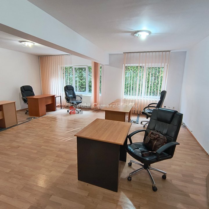Spatii Comerciale Cluj va ofera spre inchiriere un spatiu pentru birouri cu o suprafata de 43 mp. Acesta este compartimentat astfel: - 1 camera open space (43 mp), hol (15 mp), baie (4.5mp). Spatiul este in stare buna dupa cum se poate vedea si din poze. Este situat la parterul unui imobil D+P+1+M in care exista numai spatii de birouri. Exista de asemenea si 1 loc de parcare. Pentru detalii si vizionari va rog sa ma contactati!