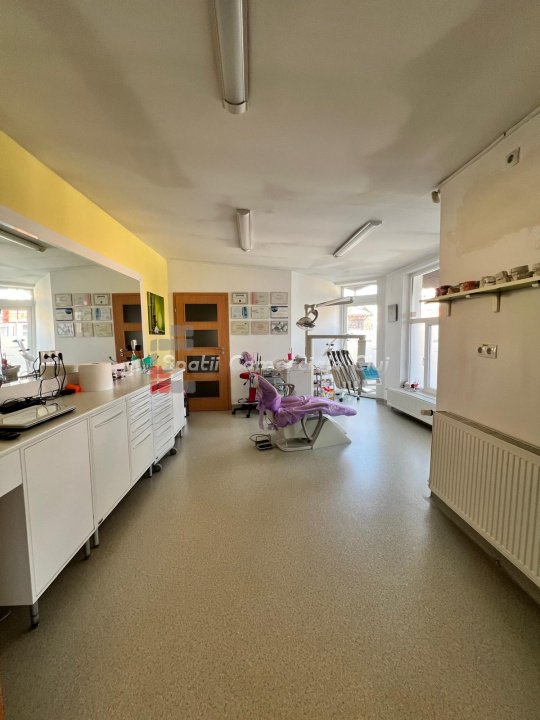 Inchiriere imobil de servicii sau activitati de birou, actualmente folosit ca si cabinet stomatologic, insa e nevoie de schimbarea destinatiei pentru activitati similare. Proprietatea are expunere stradala si este vizibila de pe podul peste calea ferata care duce spre Dambul rotund si Baci. La 4-5 minute venind pe jos de la Gara. La parter se gasesc 3 incaperi cu un spatiu de receptie, hol si 2 bai de serviciu. La demisol se afla o camera de 35m. Proprietate se poate accesa direct si de pe strada laturalnica. La etaj sunt 4 incaperi si o baie completa cu cada si dus, dar care pot fi facute un singur spatiu open space. Are un garaj impresionant ptr 3 -4 masini.