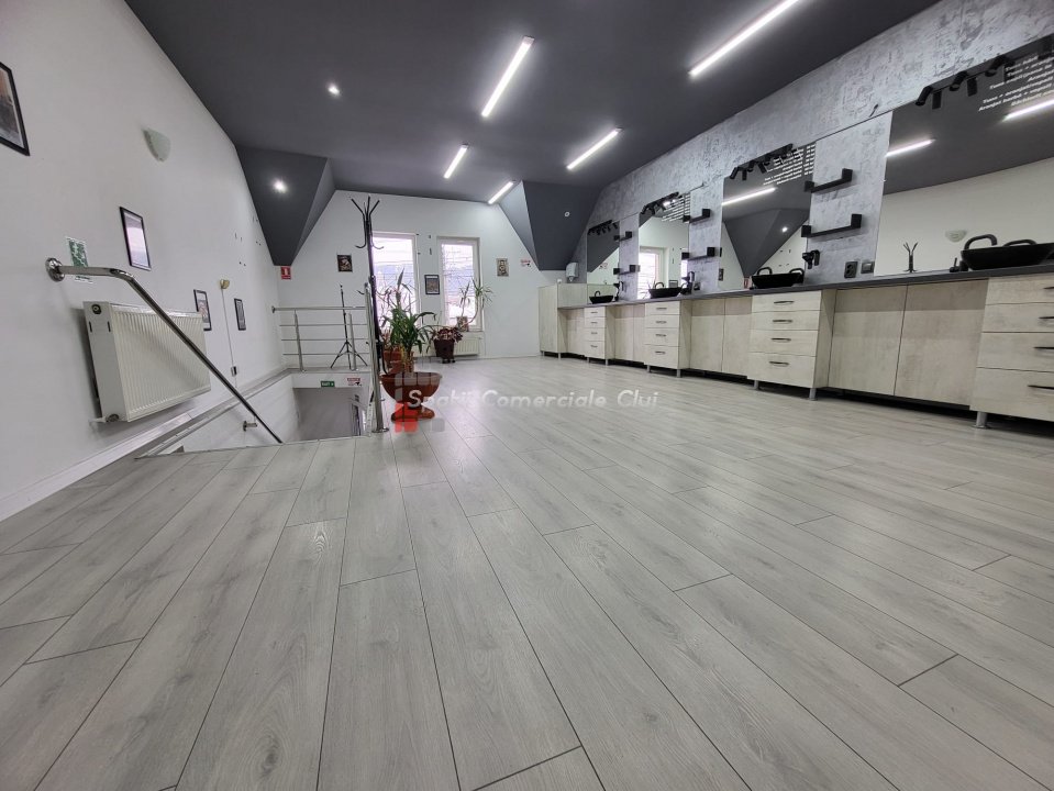 Se inchiriaza spatiu comercial complet echipat, ideal pentru deschiderea unui salon de infrumusetare (frizerie / coafor), situat in Gherla, zona centrala, cu vad bun si acces facil. Spatiul nu este utilizat in prezent, oferind o oportunitate excelenta de investitie si dezvoltare pentru antreprenori sau companii din domeniu. Este pregatit pentru operare imediata, fara costuri suplimentare semnificative. Proprietatea reprezinta o optiune ideala pentru deschiderea unui nou punct de lucru, fiind potrivita pentru extinderea si dezvoltarea unor branduri cunoscute din Cluj, fie sub forma de filiala, franciza sau reprezentanta locala. Dotari si compartimentare: 4 posturi de lucru pentru coafor / frizerie, post dedicat pentru manichiura si pedichiura, camera separata pentru sterilizare, vestiar pentru personal, mobilier profesional si echipamente existente, aer conditionat, curent trifazic, contorizare separata pentru utilitati, toate utilitatile necesare functionarii. Avantaje: locatie centrala cu vizibilitate buna, spatiu complet amenajat, gata de utilizare, investitie initiala redusa, oportunitate pentru dezvoltare brand / extindere retea, disponibil imediat, flexibilitate inchiriere: se poate inchiria un post de lucru la 150 euro/luna sau intreg spatiu la 450 euro/luna. Pentru detalii suplimentare si programarea unei vizionari, va rugam sa ne contactati!