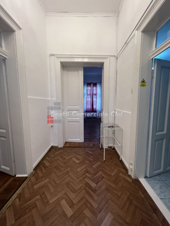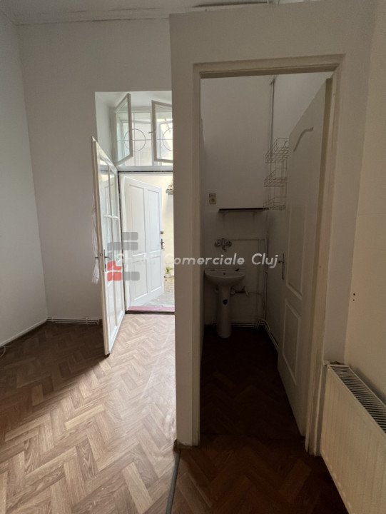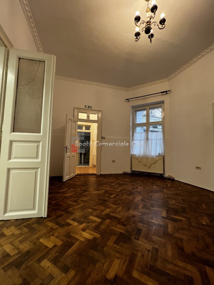 Va prezentam spre inchiriere spatiu comercial 104mp, situat in Centru, peste drum de cinema Florin Piersic, in curte interioara dar cu acces foarte usor Este compus din 3 incaperi spatioase si luminoase, hol de intrare, 2 grupuri sanitare, oficiu, zona de receptie. Are 2 intrari separate, 4 geamuri spre canalul Morii, centrala proprie si calorifere. Destinatie comerciala in Cartea Funciara, este potrivit pentru salon, activitati medicale, sediu firma etc. Exista scurgere si robinet de apa in fiecare incapere. Disponibil imediat. Suplimentar se poate inchiria spatiu de depozitare in pivnita (50mp) sau pod (25mp).
