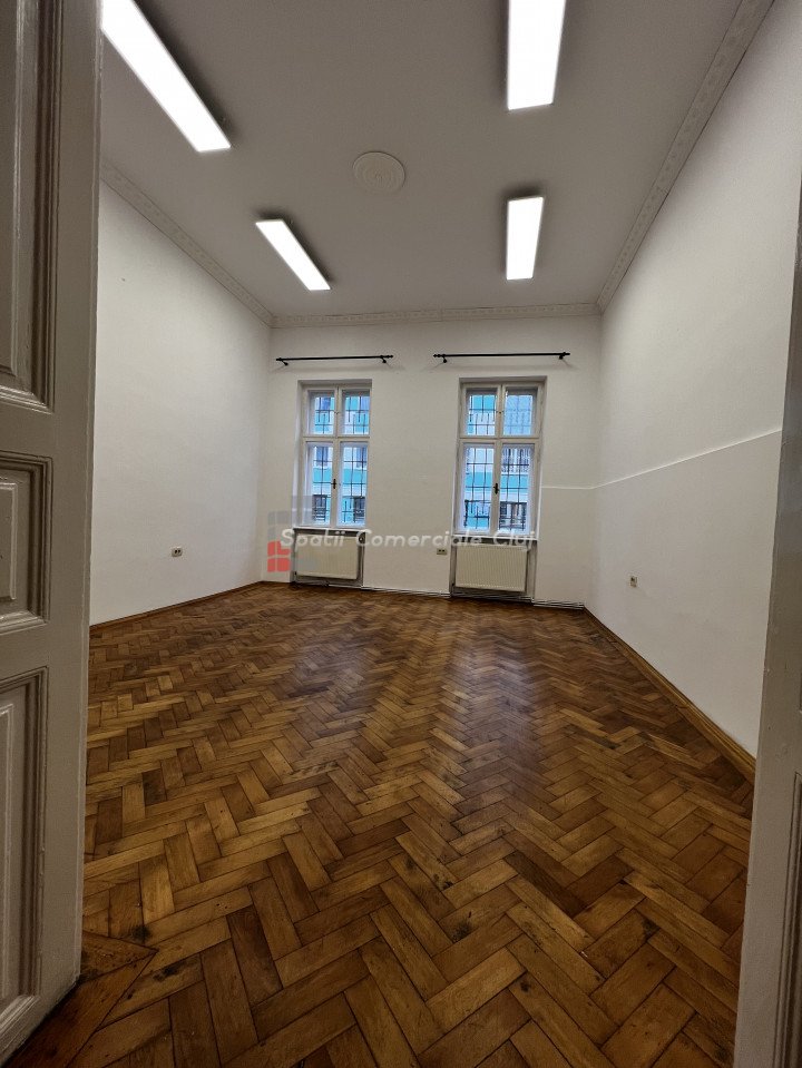 Va prezentam spre inchiriere spatiu comercial 104mp, situat in Centru, peste drum de cinema Florin Piersic, in curte interioara dar cu acces foarte usor Este compus din 3 incaperi spatioase si luminoase, hol de intrare, 2 grupuri sanitare, oficiu, zona de receptie. Are 2 intrari separate, 4 geamuri spre canalul Morii, centrala proprie si calorifere. Destinatie comerciala in Cartea Funciara, este potrivit pentru salon, activitati medicale, sediu firma etc. Exista scurgere si robinet de apa in fiecare incapere. Suplimentar se poate inchiria spatiu de depozitare in pivnita (50mp) sau pod (25mp).