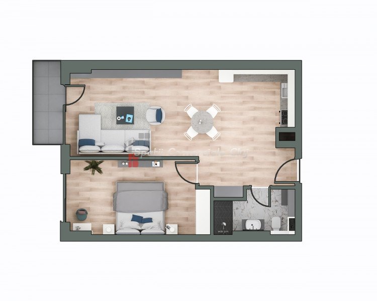 » 2 camere, 1 kitchen, 1 bathroom, 45 m2