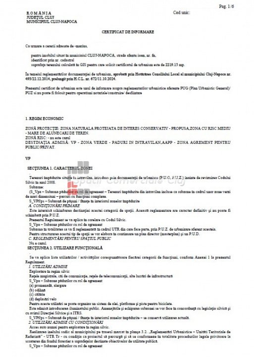 Spatii Comerciale Cluj will offer for sale a 2219 sq m plot of land, located in a special area, at the edge of the fores...