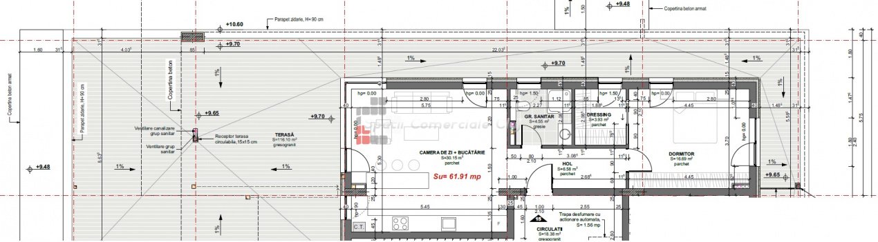 » 2 camere, 1 kitchen, 1 bathroom, 55 m2