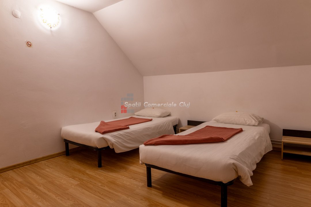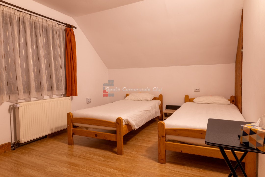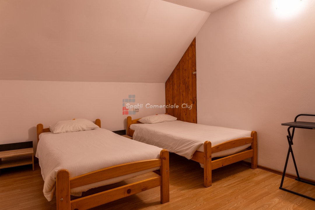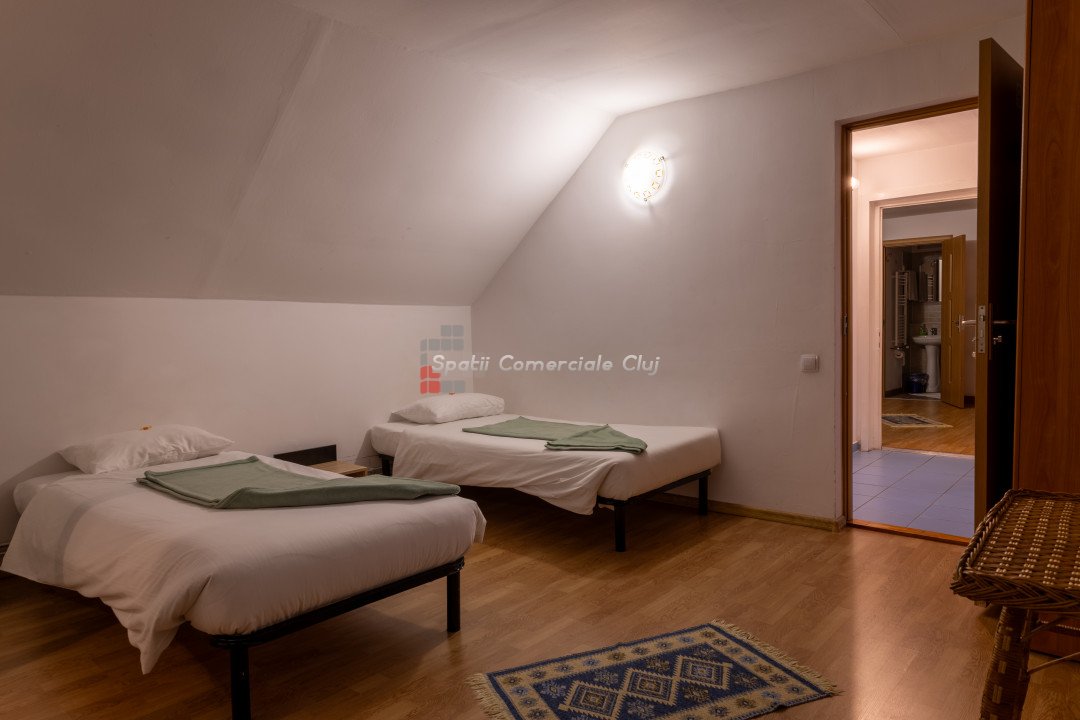 Spatii Comerciale Cluj va propune spre vanzare o proprietate versatila, ideala pentru investitie, situata in cartierul Zorilor. Cu o suprafata utila de 451,33 mp si un teren de 677 mp, imobilul este compartimentat inteligent, oferind 10 unitati de cazare, 15 camere, 13 bai si 4 bucatarii complet echipate. Caracteristici cheie: - Suprafata construita: 451,33 mp - Teren: 677 mp - Camere: 15 - Bai: 13 - Bucatarii: 4 complet mobilate si utilate - Unitati de cazare: 10 - Hala separata: 90 mp – ideala pentru depozitare sau activitati comerciale Renovare completa in 2019, imbunatatiri constante Sistem de securitate avansat: camere video, interfon cu amprenta, control acces Curte amenajata: foisor, spatiu verde, zona pentru gratar Potential investitional: - Boutique hotel - Spatiu de coworking - Centru de evenimente - Inchiriere pe termen lung sau regim hotelier Proprietatea este complet mobilata si izolata termic, oferind un randament excelent pentru investitie. Pentru detalii si vizionari, sunati ACUM! ID: P24848