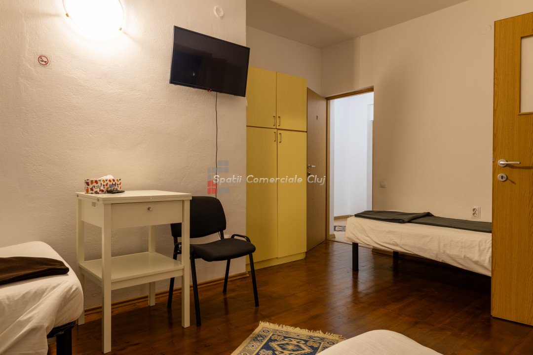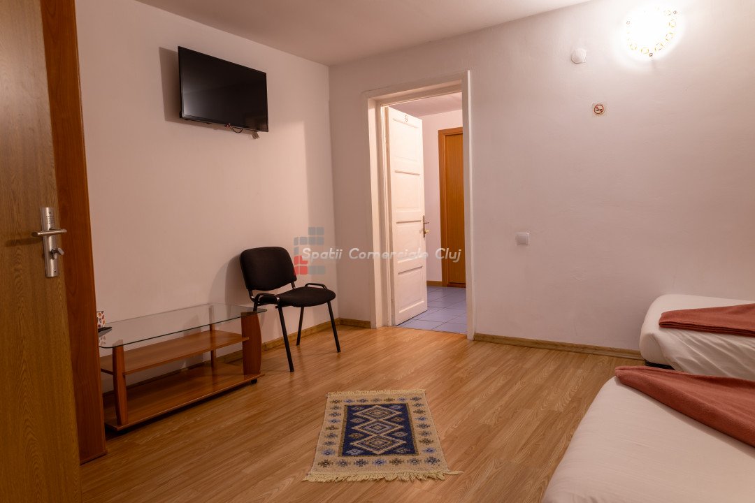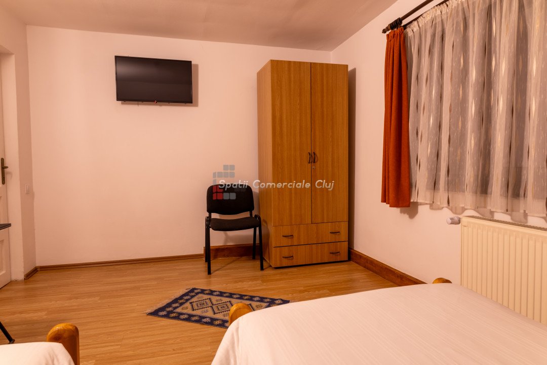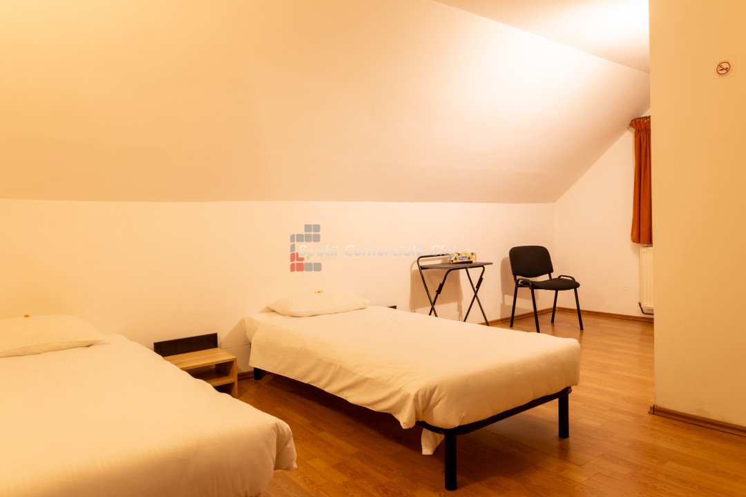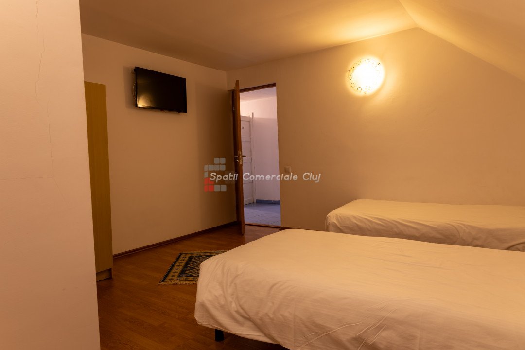 Spatii Comerciale Cluj va propune spre vanzare o proprietate versatila, ideala pentru investitie, situata in cartierul Zorilor. Cu o suprafata utila de 451,33 mp si un teren de 677 mp, imobilul este compartimentat inteligent, oferind 10 unitati de cazare, 15 camere, 13 bai si 4 bucatarii complet echipate. Caracteristici cheie: - Suprafata construita: 451,33 mp - Teren: 677 mp - Camere: 15 - Bai: 13 - Bucatarii: 4 complet mobilate si utilate - Unitati de cazare: 10 - Hala separata: 90 mp – ideala pentru depozitare sau activitati comerciale Renovare completa in 2019, imbunatatiri constante Sistem de securitate avansat: camere video, interfon cu amprenta, control acces Curte amenajata: foisor, spatiu verde, zona pentru gratar Potential investitional: - Boutique hotel - Spatiu de coworking - Centru de evenimente - Inchiriere pe termen lung sau regim hotelier Proprietatea este complet mobilata si izolata termic, oferind un randament excelent pentru investitie. Pentru detalii si vizionari, sunati ACUM! ID: P24848