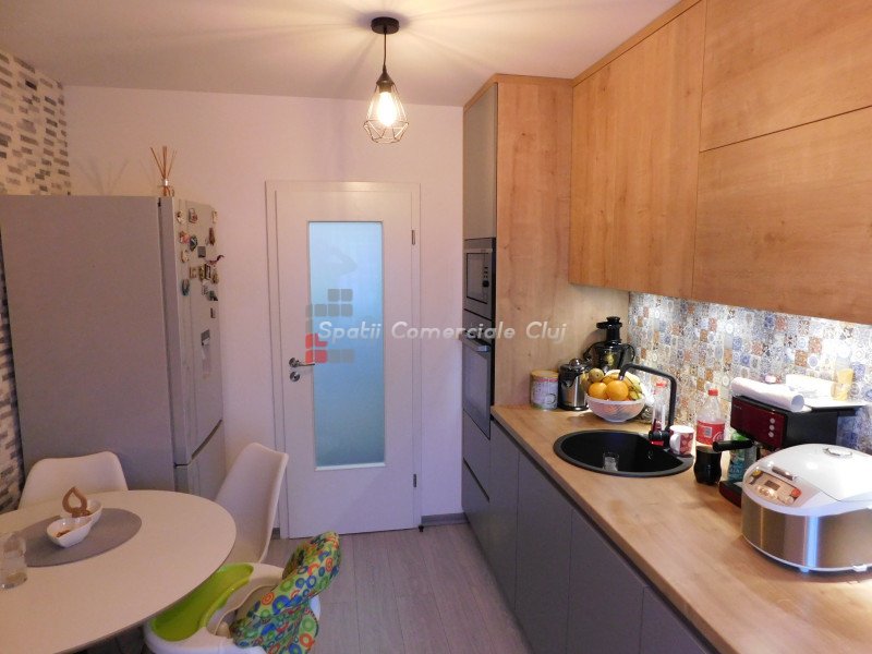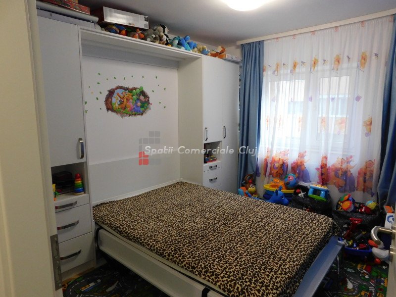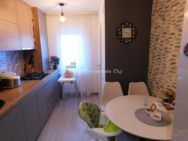 Spatii Comerciale Cluj va ofera spre vanzare un apartament cu 3 camere, situat in zona strazii N. Titulescu, cu acces facil la mijloace de transport in comun, supermarketuri, magazine, farmacii, restaurante, parcuri, scoli. Acesta este pozitionat la etajul 2 al unui imobil cu 4 niveluri si dispune de o suprafata utila de 63 mp. Compartimentarea apartamentului este decomandata si dispusa astfel: hol cu debara, living, doua dormitoare, bucatarie cu camara, doua bai, un balcon si un beci. Beneficiaza de centrala si calorifere noi, de geamuri termopan cu tamplarie din PVC si usa metalica la intrare. Se ofera spre vanzare complet mobilat, mobila făcută la comanda, si utilat cu toate electrocasnicele în garanție si cu posibilitatea achizitionarii unui garaj. Pentru mai multe detalii va rugam sa ne contactati.