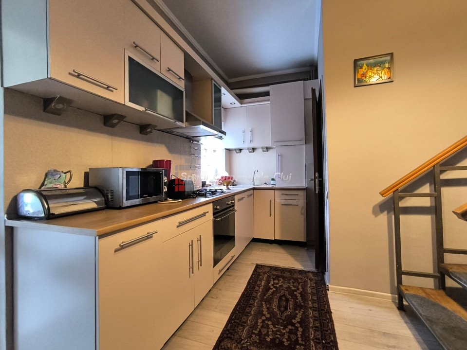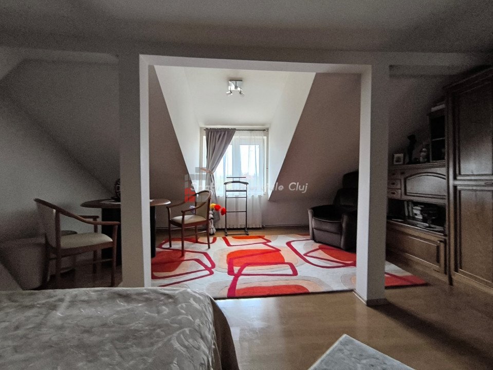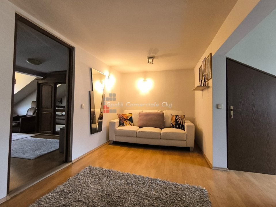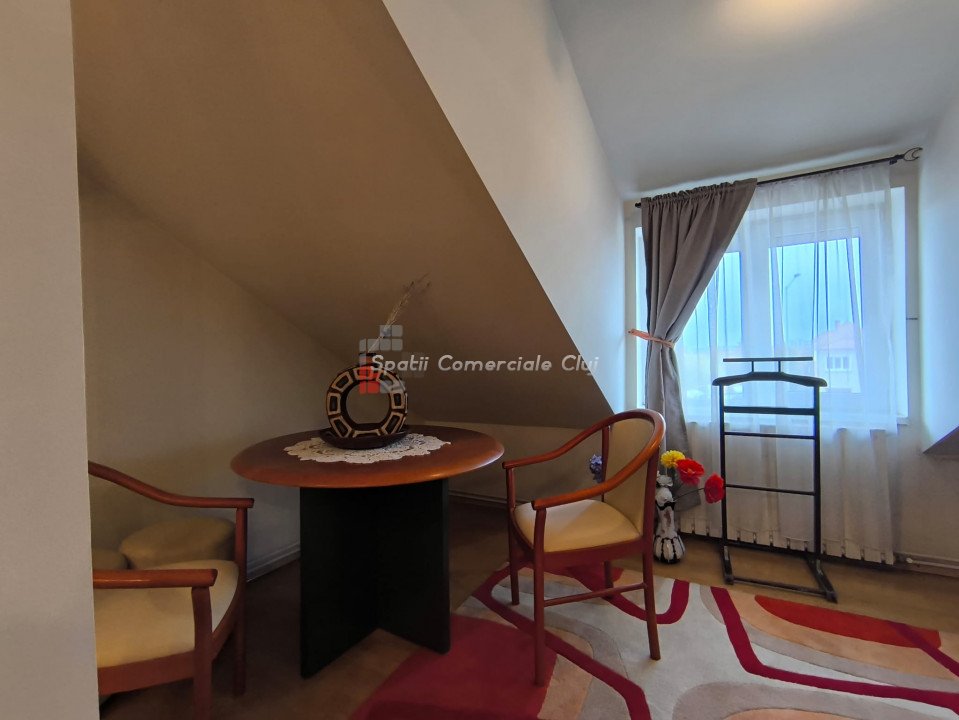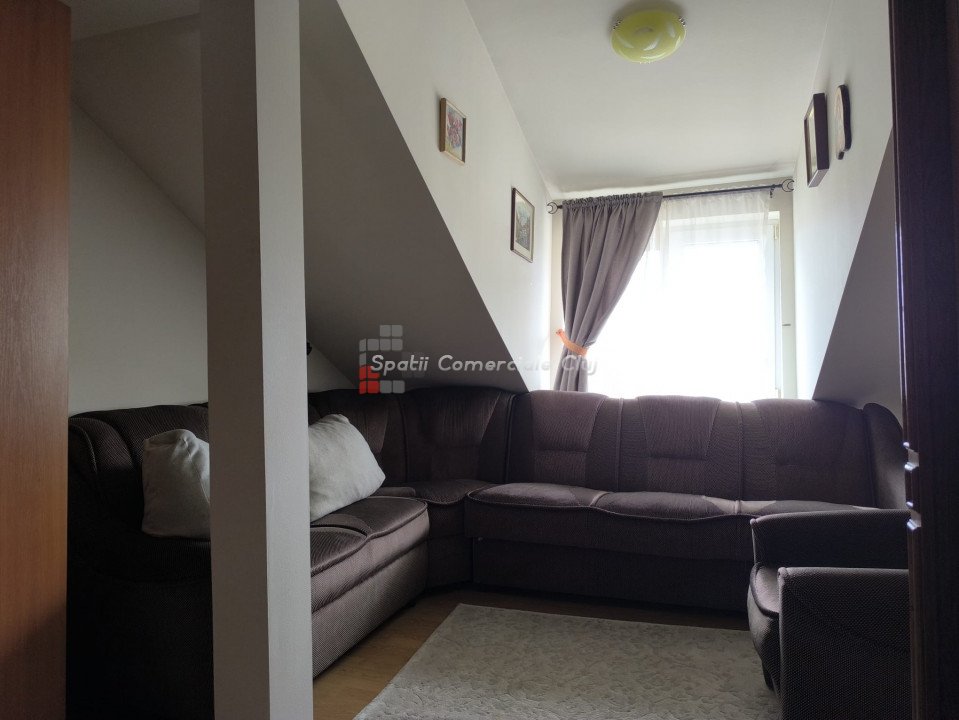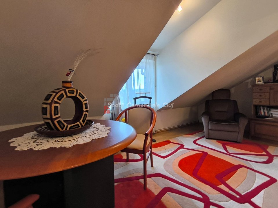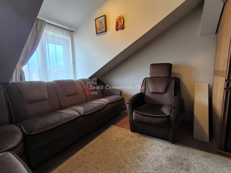 Oportunitate investitie, 2 case individuale, 440 mp utili total, pretabil clinica, pensiune, casa pentru varstnici, etc, in zona Calea Turzii, strada retrasa! Spatii Comerciale Cluj intermediaza vanzarea a 2 case individuale, aflate in aceeasi curte si avand acelasi proprietar, situate optim in zona Calea Turzii, la cateva minute de centrul Clujului. Corpul 1 de cladire, fosta vila de oaspeti, este construit pe 3 niveluri: D+P+M, compartimentarea fiind urmatoarea: - La demisol: 3 camere si 1 baie; - La parter: hol, casa scarii, living, bucatarie, 3 dormitoare, 3 bai; - La mansarda: 1 camera, 1 baie, 1 terasa generoasa, respectiv cale de acces la un pod, ce poate fi folosit ca spatiu de depozitare; Corpul 2 de cladire este construit pe 3 niveluri: P+1E+M, compartimentarea fiind urmatoarea: -La parter: hol, casa scarii, living+bucatarie open space, 1 camara, 1 dormitor, 1 baie, 1 terasa-logie; - La etaj: living, bucatarie, 3 dormitoare, 1 baie; - La mansarda: living, 2 dormitoare, 2 debarale, 1 baie; Terenul aferent are o suprafata de 402 mp , oferind liniste si o priveliste minunata viitorilor locatari. In curte mai exista o terasa generoasa, amenajata, 1 garaj, si 3 locuri de parcare; Cele 2 corpuri de cladire sunt complet separate si contorizate, insa se vand doar impreuna. Pentru alte detalii sau o oferta personalizata, va stam la dispozitie. ID Proprietate: P47037