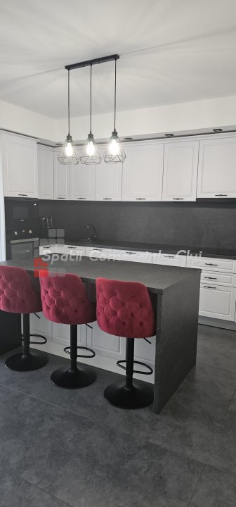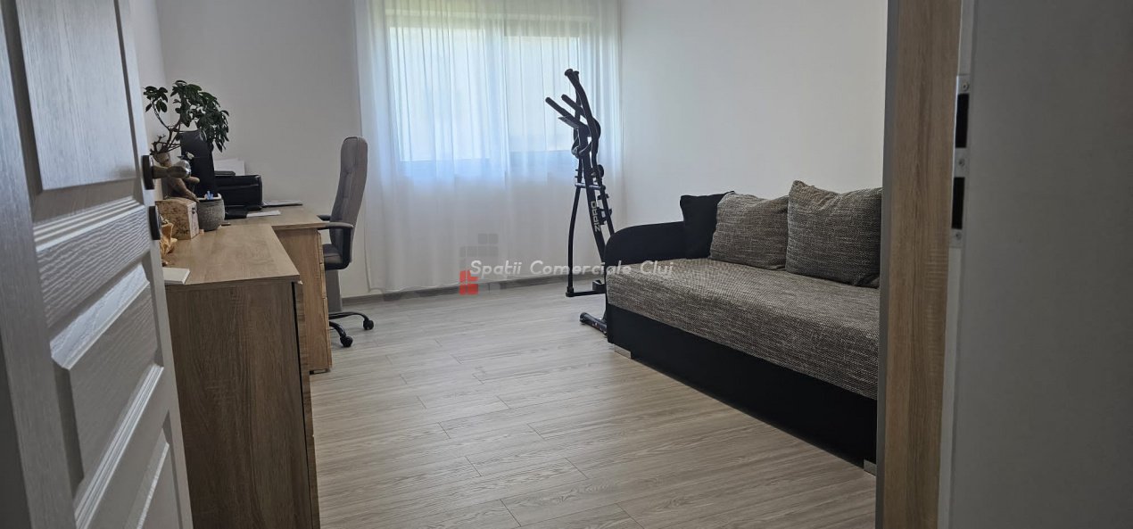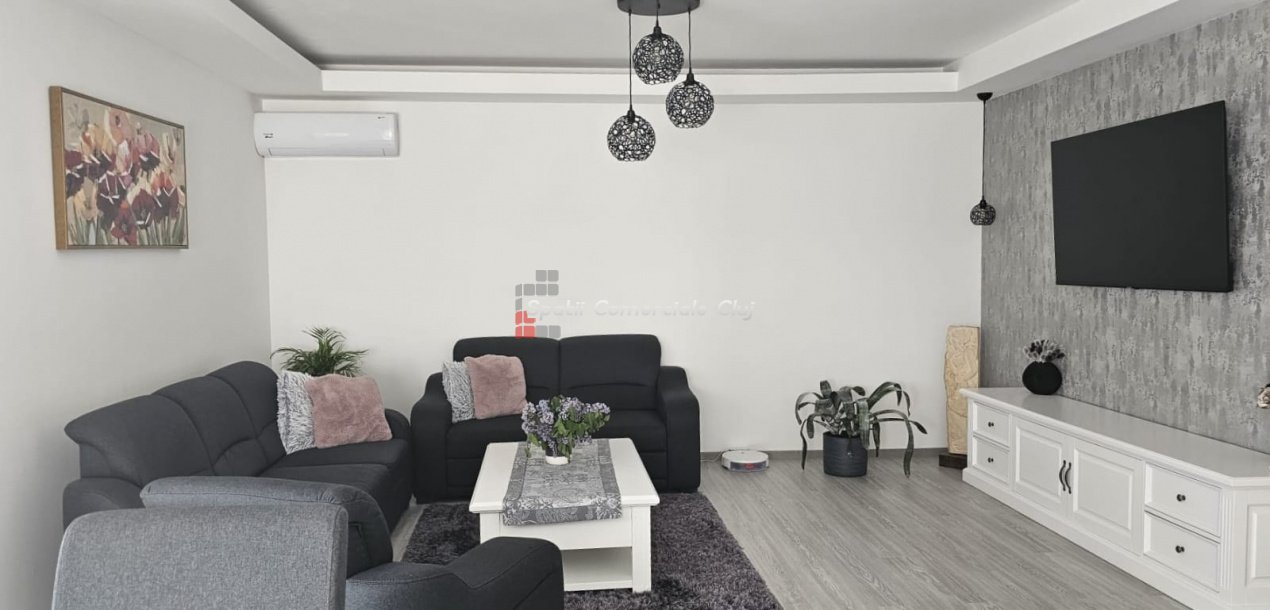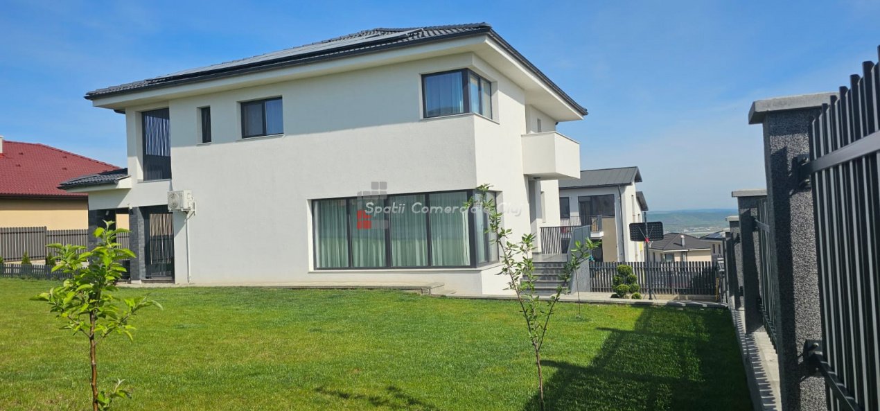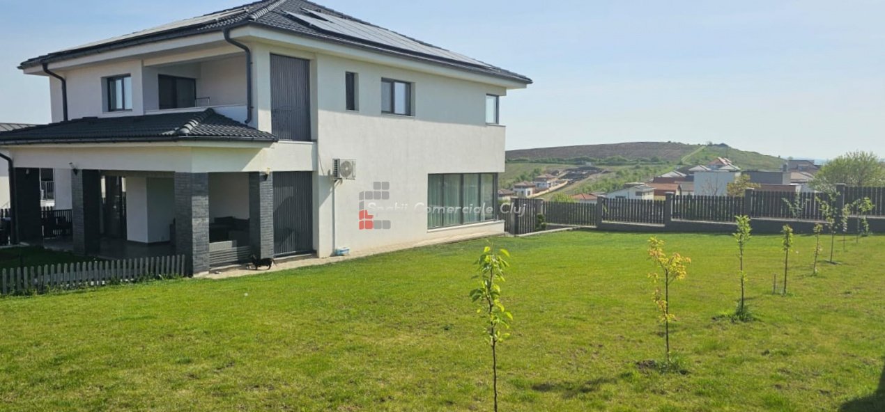 Spatii Comerciale Cluj va ofera spre vanzare, departe de agitatia orasului, casa moderna intr-un cartier nou din satul Dezmir. Imobilul are, la toate nivelurile,incalzire in pardosea si instalatie de aer conditonat, .este independenta energetic in proportie de 85 % (echipare cu panouri fotovoltaice) si se vinde complet mobilat si utilatat. De asemenea, este prevazut cu bazin de captare apa pluviala, Suprafata utila 240 mp, teren 800 mp Compartimentare: - demisol: garaj plus sala de sport; - parter: - living, bucatarie, camara, baie, hol, terasa generoasa. -etaj : - 3 dormitoare ( unul matrimonial cu baie,dresing) 2 bai, si terasa; Se accepta și schimb cu apartament plus diferența.