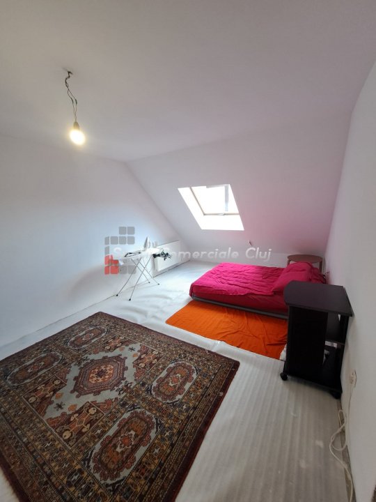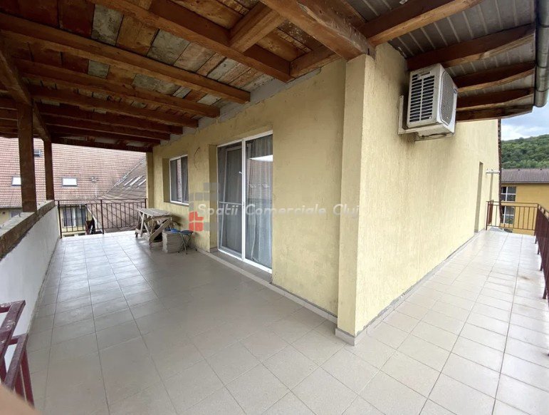 Spatii Comerciale Cluj va propune spre vanzare un apartament generos avand o suprafata utila de 82 mp utili, situat pe strada Porii. Acesta se afla la mansarda unui bloc format din parter + 3 etaje + mansarda. Compartimentare: -> Living cu bucatarie open space si loc de luat masa; -> Hol; -> Doua bai ( una este modificata pentru a fi debara); -> Doua dormitoare; -> O terasa generoasa avand o suprafata de 35 mp, in forma de litera L cu vedere spre curtea comuna. Imobilul beneficiaza de un loc de parcare exterior si un pod construibil cu CF separat, avand o suprafata de 60 mp, incluse in pret. Pentru orice detalii si vizionari va rugam sa ne contactati cu incredrere! ID Proprietate: P49396