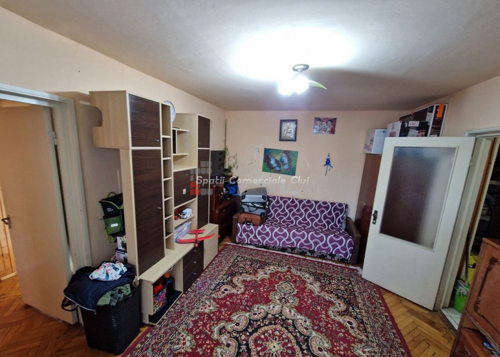 Spatii Comerciale Cluj va propune achizitia unui apartament situat la parterul unui imobil cu 4 etaje din Grigorescu, zona Profi. Apartamentul are o suprafata de 69 mp si este compartimentat astfel: - 1 living de trecere - 3 dormitoare - bucătărie - 2 bai - 2 holuri - debara -balcon. Blocul este izolat iar apartamentul are geamuri termopan, centrală proprie si parchet din lemn masiv. Necesita imbunatatiri dar este foarte potrivit pentru locuinta. Este foarte aproape de toate zonele de interes, promenada de pe malul Somesului, intr-o zona linistita. Pentru alte detalii sau programarea unei vizite nu ezitati sa ne contactati!