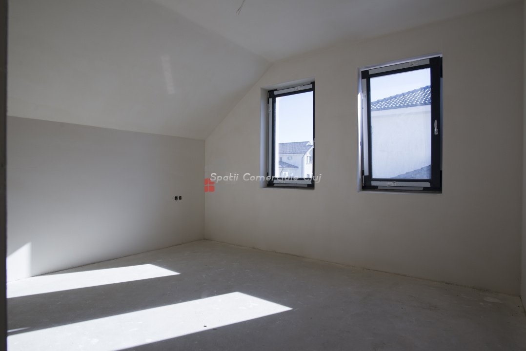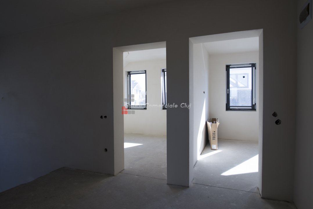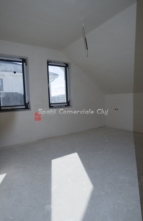 Spatii Comerciale Cluj ofera spre vanzare o casa individuala superba, cu o suprafata utila de 215 mp si teren de 500 mp, situata in zona centrala a comunei Chinteni. Proprietatea este construita din caramida, izolata pe exterior cu polistiren de 15 cm si acoperita cu tabla moderna. Podul este izolat cu spuma poliuretanica, ferestrele sunt tripan cu protectie UV, iar glafurile sunt din travertin. Casa dispune de incalzire in pardoseala, cu distribuitor separat pentru fiecare nivel. Compartimentare ideala: - demisol (70 mp utili): spatiu de depozitare, bucatarie, zona de relaxare; - parter: hol, baie, birou, living cu bucatarie open space si spatiu pentru semineu; - mansarda: 3 dormitoare, 2 bai, dressing. Pod: accesibil, ideal pentru depozitare Exterior si facilitati: - terasa generoasa de aprox. 25 mp, amenajata cu zona de barbeque si gril, cu posibilitate de extindere; - curte terasata, amenajata cu gazon si bazin pentru colectarea apei pluviale (irigatii); - poarta auto cu deschidere automata si instalatie pentru interfon; - toate utilitatile disponibile: apa, gaz, curent trifazic, canalizare; - instalatie electrica pregatita pentru panouri solare. Design si locatie: Arhitectura moderna, cu fatada placata partial cu caramida aparenta si travertin. Casa este pozitionata pe un versant cu expunere sud-estica, beneficiind de lumina naturala pe tot parcursul zilei. Acces facil pe drum asfaltat, intr-o zona retrasa, linistita, dar aproape de centrul comunei. Proprietatea este in faza de receptie, se preda semifinisata. Vizionare video: https://youtube.com/shorts/LRYOxfmX63Y https://youtube.com/shorts/_YfoBg2Vj1g Pret: 286 000 euro Un pret comparabil cu cel al unui apartament din centrul Clujului – dar aici alegi 215 mp de confort, spatiu si liniste, nu doar 70 mp intre blocuri. Contacteaza-ne acum pentru detalii si programarea unei vizionari! Transforma aceasta proprietate in noul tau camin din Chinteni!
