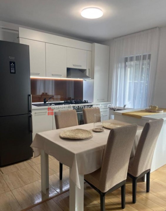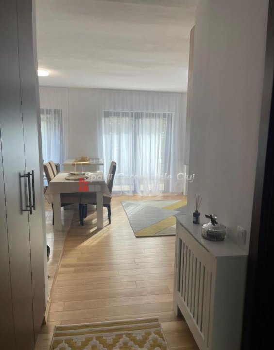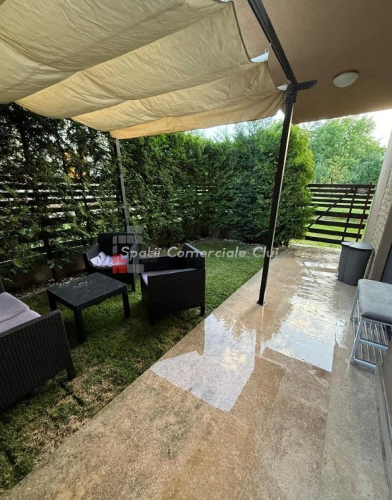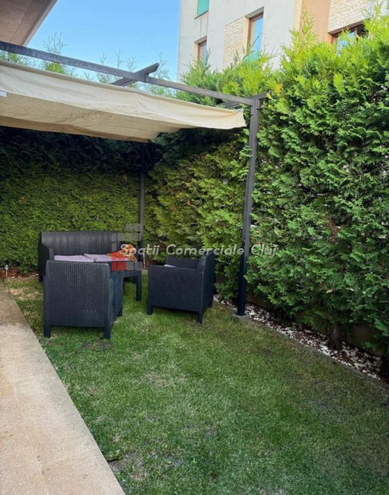 Se vinde un apartament cu 2 camere in cartierul Buna Ziua (living cu bucatarie open space + dormitor), baie cu geam. Suprafata 53 mp si gradina cu suprafata de aprox 30 mp. Apartamentul este complet mobilat si utilat, inclusiv masina de spalat vase, televizor in living, masina de spalat haine. Intregul apartament a fost recent renovat. Canapeaua din living este extensibila si are lada de depozitare. Gradina este amenajata cu pergola si mobilier de gradina. Este situat la parterul unui bloc tip vila cu 2 etaje si numai 6 unitati locative. Apartamentul are loc de parcare exterior. Imobilul este amplasat pe o strada privata, inchisa circulatiei si dispune de spatiu verde cu gazon. Statie de autobuz la capatul strazii.