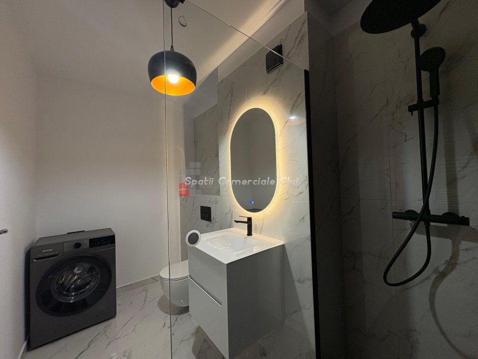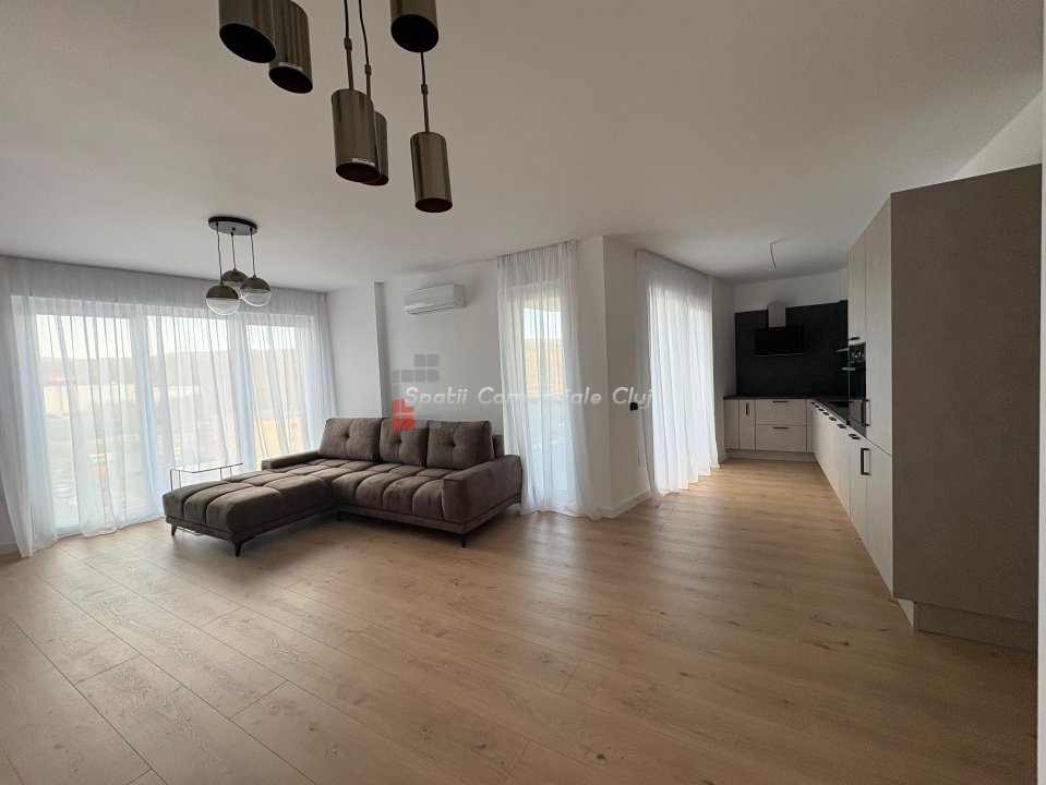 Spatii Comerciale Cluj va oferă spre vânzare un apartament cu 3 camere semidecomandate, situat in Iris, într-un ansamblu de top, construit cu materiale de calitate la standardele NZEB, izolație YTONG, pereți despărțitori între apartamente cu izolație SILKA pentru izolare fonică și costuri mici de întreținere. Clădirea este dotată cu panouri fotovoltaice și sisteme inteligente. Apartamentul este se afla într-o construcție izolată cu vata bazaltică de 20 cm grosime și fațadă ventilată. Aflat la etajul 6 al imobilului cu 9 etaje, apartamentul este compartimentat astfel: - două dormitoare cu pat matrimonial - living cu bucătărie open-space complet utilată; - două băi cu cabină de duș walk-in și dulapuri pentru depozitare; -balcon de 7,71 mp cu o priveliște superbă, cu acces din ambele dormitoare; -balcon de 8,14 mp cu acces din zona de living. Apartamentul se predă complet mobilat și utilat cu electrocasnice de ultima generatie și mobilier Rovere și Kuxa pentru bucatarie, menit pentru a se ridica la inaltimea celor mai exigente standarde. Se află în apropierea stațiilor de transport în comun, magazine, restaurante, spații verzi, farmacii etc. Locul de parcare subterană se achizitioneaza la pretul de 21000 euro.