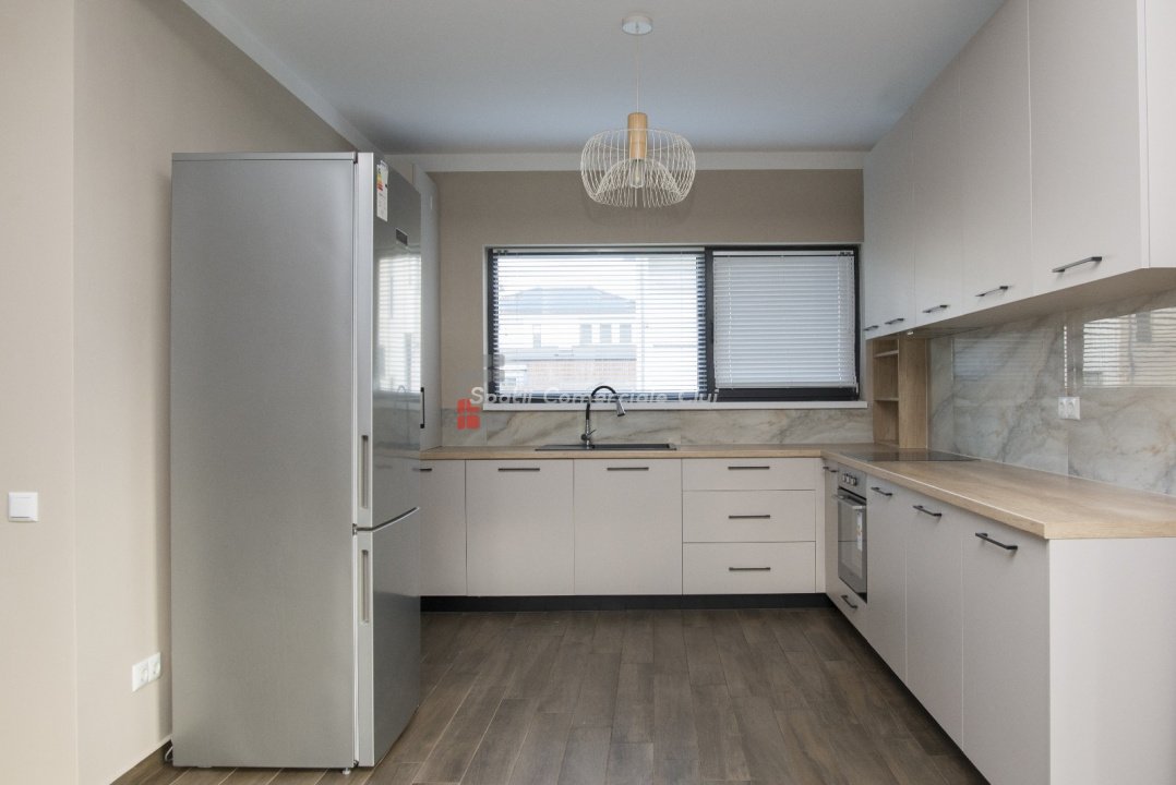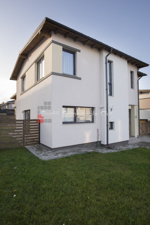 Casă nouă, modernă, ideală pentru lucru de acasă sau retragere în liniște – la doar 15–20 min de Cluj-Napoca! Vă prezentăm o proprietate recent construită (2023), perfectă pentru cei care își doresc confort, spațiu și liniște, într-un cartier nou de case, cu acces facil către Cluj-Napoca. Este alegerea ideală atât pentru cei care lucrează în regim remote/hibrid, cât și pentru persoanele aflate la vârsta a doua care vor să se retragă din agitația orașului într-un mediu plăcut, aproape de natură. Caracteristici generale: - casă din cărămidă P+1E, acoperită cu tablă - suprafață construită: 187 mp - suprafață utilă: 139 mp - teren: 438 mp - izolație exterioară cu polistiren 15 cm - garaj pentru 1 autoturism + parcare pentru 3 autoturisme Casa este complet finisată și dotată cu toate facilitățile moderne necesare unui trai confortabil. Dotări și beneficii: - incălzire în pardoseală pe ambele niveluri - geamuri termopan - bucătărie complet mobilată și utilată - acces asfaltat - toate utilitățile: apă, canalizare, gaz, curent - zonă liniștită, cartier nou de case, comunitate tânără Compartimentare eficientă Parter: - living generos cu acces pe terasa din spatele casei - bucătărie open-space - baie - spațiu de depozitare - acces direct din garaj în hol Etaj: - 3 dormitoare - 2 băi - dressing - balcon Partea frontală a casei este pavată și oferă două locuri suplimentare de parcare. În spate, terenul este amenajat cu gazon – un spațiu perfect pentru relaxare, joacă sau lucru în aer liber. Accesul dinspre Cluj-Napoca se poate face pe mai multe rute, în funcție de zona din care vii: - dinspre Făget, Bună Ziua, Borhanci – pe centură - dinspre Centru, Someșeni – pe str. Cantonului sau Traian Vuia - dinspre aeroport – pe str. Traian Vuia Transport în comun bine organizat, linia M43 circulă din oră în oră, iar în orele de vârf la fiecare 30 de minute. De ce este casa perfectă pentru tine? Dacă lucrezi mult timp de acasă: beneficiezi de un mediu liniștit, spațios, ideal pentru productivitate. Dacă dorești să te retragi din aglomerația urbană, dar să rămâi aproape de Cluj: aici găsești confort, aer curat, comunitate și acces rapid în oraș. Preț: 256.800 € – o oportunitate excelentă pentru o casă nouă, modernă, bine poziționată!