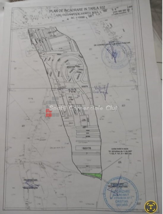Se vinde parcela de teren intravilan, situat dupa cimitirul Mos Ion Roata in Sopor. Teren cadastrat cu CF fara sarcini, situat in tarlaua 102. Perspectiva de investitie, pretul este negociabil. Accesul se face pe drum pietruit. Terenul este pe coasta dealului cu expunere Sud-Vest si orientare catre oras.