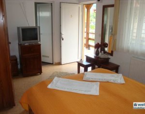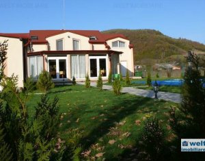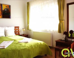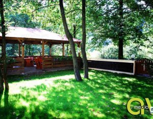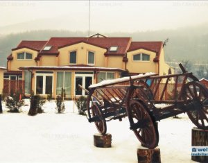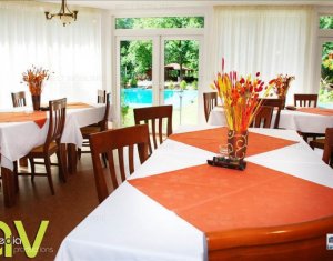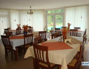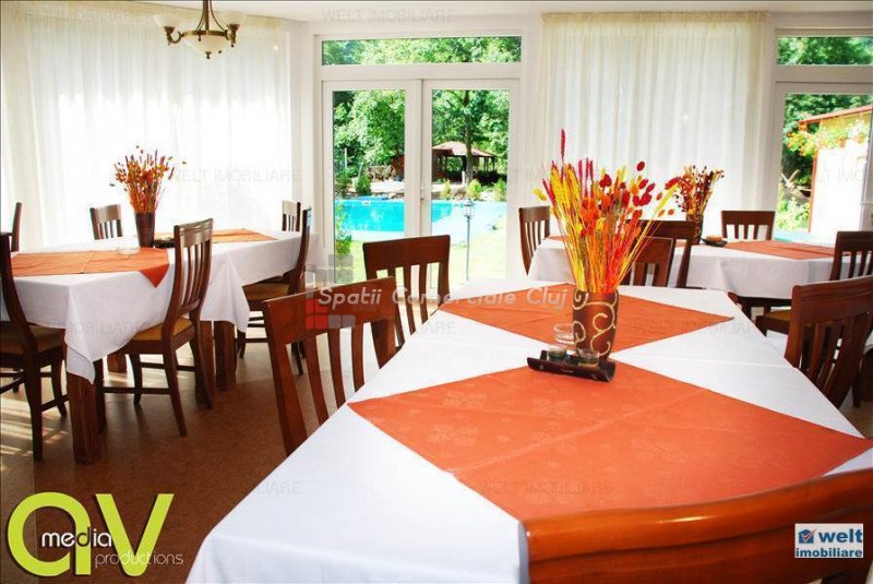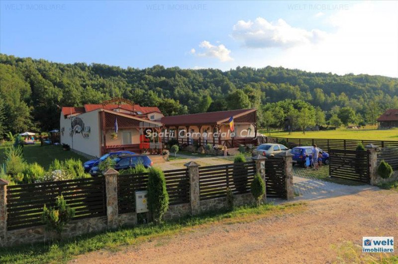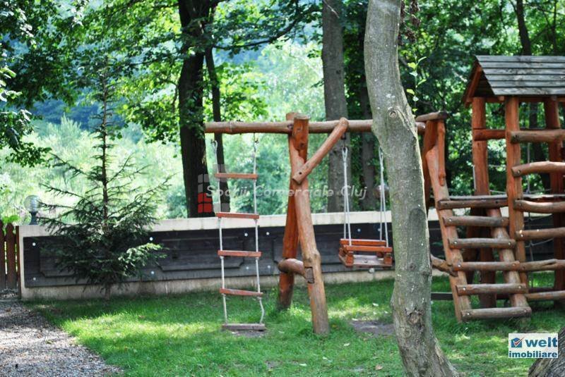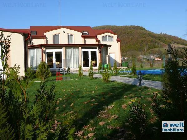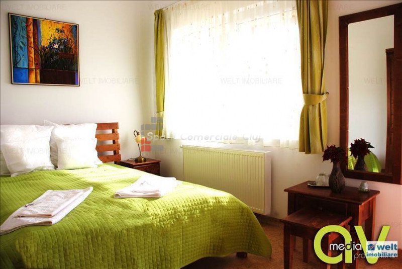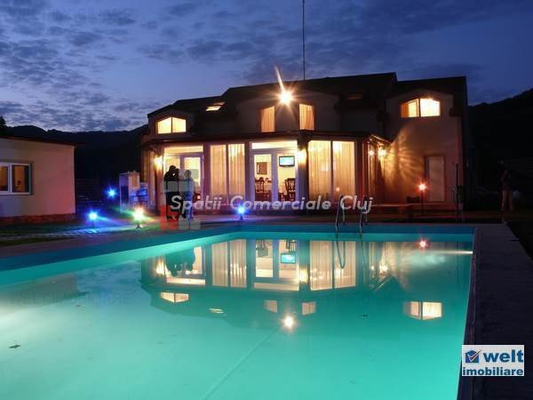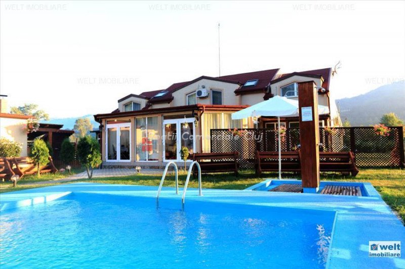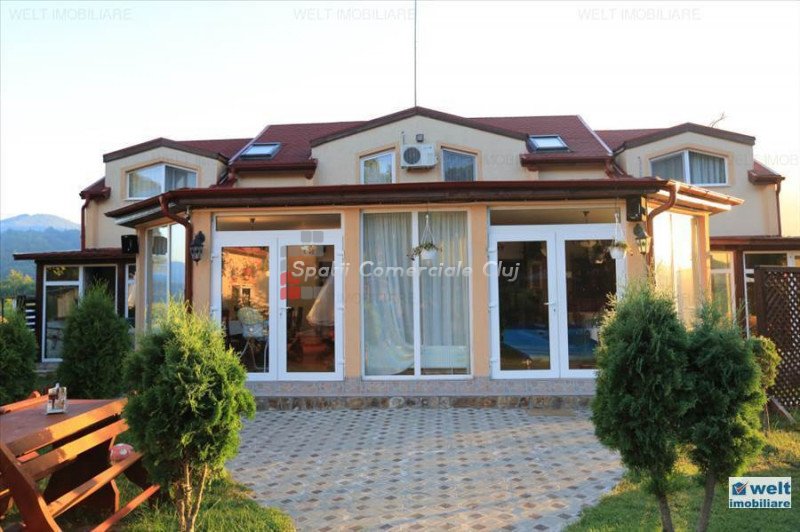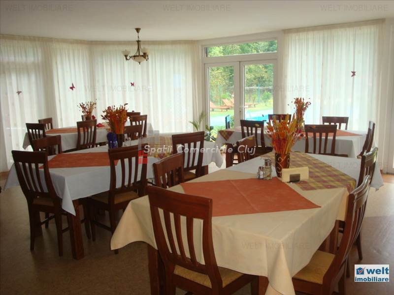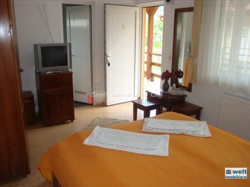 Zona foarte frumosa Va oferim spre vanzare o pensiune intr-o zona foarte frumoasa din judetul Cluj. Pensiunea are un regim de inaltime P+M, avand o suprafata utila de 412 mp, iar terenul aferent constructiei este de 1800 mp. Dispune de 9 camere duble, 2 apartamente, 4 camere in constructie, 14 grupuri sanitare, sauna, jacuzzi, foisoare, loc de joaca pentru copii si agrement, piscina, si un restaurant cu o capacitate de 50 de persoane, bucatarie complet mobilata si utilata. Zona in care se afla este una deosebit de frumoasa, fiind aproape de padure; reprezinta destinatia ideala pentru personele care cauta liniste si aerul curat din zona de munte. Pentru mai multe detalii si vizionari nu ezitati sa ne contactati. pretvanzare: 400000 monedavanzare: EUR monedavanzaremp: Suprafata camera: 24.2353 mp