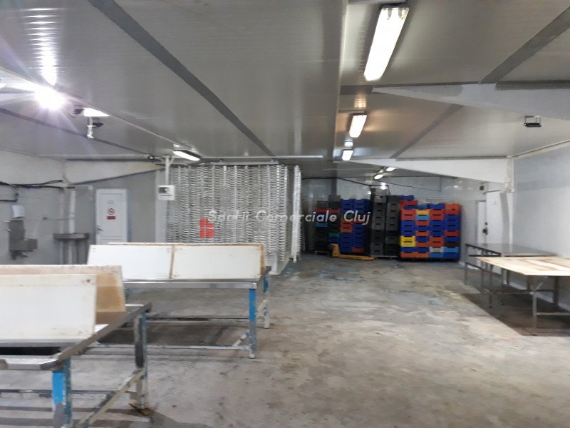 Va oferim de vanzare 10800 mp de teren industrial si platforme betonate 4 Hale de 750 mp fiecare si un corp administrativ de 180 mp in comuna Suatu. Hala 1 este amenajata pentru produse alimentare cu vestiare si birouri aferente compusa din camera congelare rapida -40 grade, 4 camere frig cu stocare totala 600 mc, temperatura pana la -22 grade. Spatiul a fost folosit pentru ambalare fructe, ciuperci de padure si peste congelat, cu Autorizatie de la DSV inca valabila! Corp Administrativ cu zona de birouri si 2 apartamente ocupabile imediat. Utilitatile disponibile sunt apa-canal, curent trifazic Situat la 17km de la Penny din Apahida.
