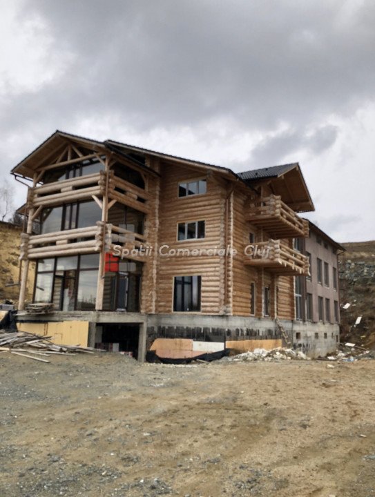 Imobilul prezentat mai jos, este situat intr-o zona superba la intrare in localitatea Salicea, in imediata apropiere a padurii Faget. Acesta a fost gandit ca si pensiune/hotel de tip "chalet" si este impartit in 2 corpuri de cladire. Partea din fata, este construita pe structura de lemn, din barne groase, iar partea din spate pe structura de tip cadre de beton. Acesta este dotat cu o zona de Spa la demisol, care cuprinde piscina interioara si exterioara, sauna, grota de sare, dusuri, vestiare etc. La parter se gaseste zona de restaurant cu bar care comunica cu sala de conferinte aflata la etajul 1 din primul corp. Corpul din spate contine 28 de apartamente matrimoniale. Cladirea existenta este intabulata in cartea funciara si are suprafata construita de 2640 mp. In proiect mai este cuprinsa si o sala de evenimente cu capacitate de 1000 de persoane. Pentru o mai buna imagine asupra a ceea ce presupune acest imobil, va punem la dispozitie restul detaliilor tehnice, schite, proiect de arhitectura etc. Imobilul se preteaza excelent pentru hotel, pensiune, impreuna cu sala de evenimente, precum si pentru camin de batrani etc.
