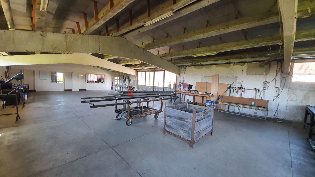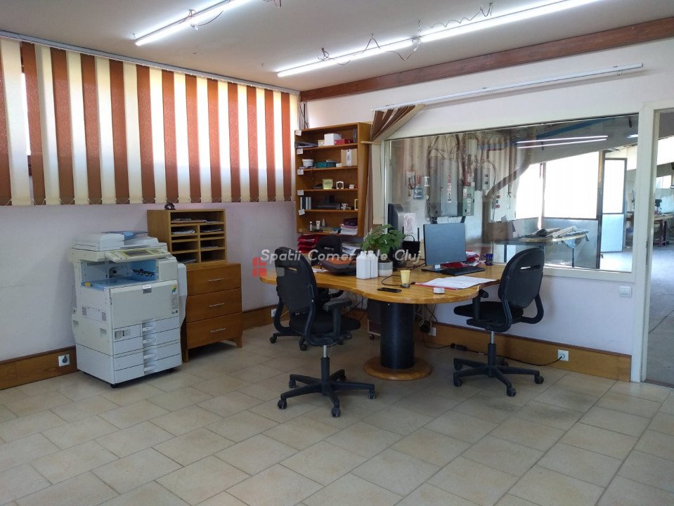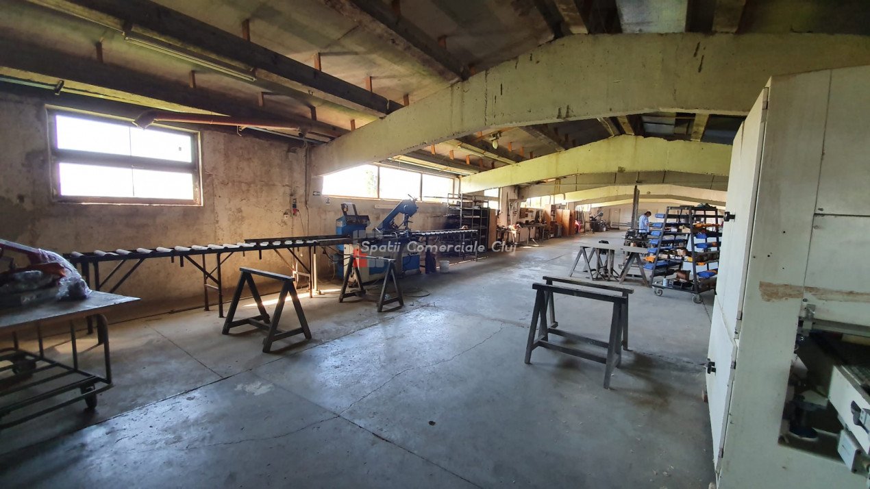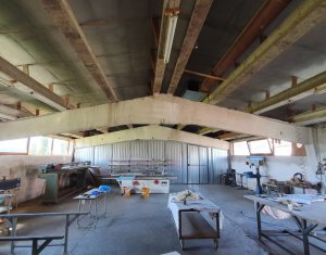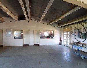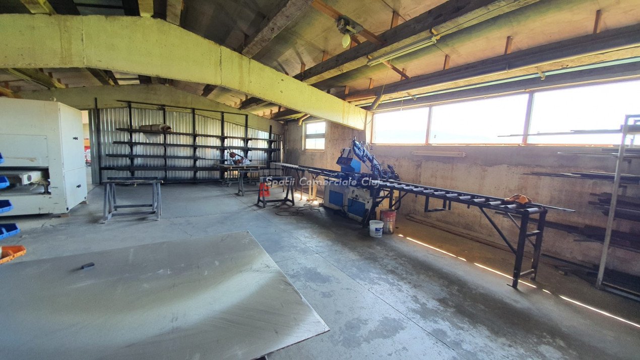 Va prezentam spre vanzare spatiu de productie in localitatea Sancraiu, jud. Cluj, situat la 6.5km din centrul Huedin. Spatiul se compune din hala de productie 787mp, garaj/depozit 116mp si curte proprie in suprafata de 1729mp. Are urmatoarele caracteristici: - an constructie: 1986 - pereti din caramida pe fundatie din beton - suprafata de 787 mp e separata in 5 compartimente dupa cum urmeaza: 1) 60 mp, 2) 60 mp, 3) 120 mp, 4) 487 mp, 5) 60 mp (birou + sala de mese + grup sanitar separat pentru barbati, femei) - dimensiuni hala: lungime: 72.36 m; latime: 10.91 m - dimensiuni spatiu de depozitare/garaj: lungime: 15 m, latime: 7.70 m - acces pentru orice tip de autovehicul inclusiv camioane de mare tonaj, drum de acces pietruit - prevazut cu Intrare din fata si lateral; - structura acoperis alcatuita din grinda de beton, izolatie termica acoperis cu polistiren de 10 mm, acoperire cu tabla cutata zincata - ferestre termoizolante din lemn - pardoseala din beton industrial - hidrant interior - echipament PSI exterior: 2 buc - sistem de instalatie cu aer comprimat - sistem de exhaustare pentru rumegus - incalzire cu ventilatie de aer cald - utilitati: apa potabila de oras, canalizare, gaz nu exista momentan, curent trifazic putere instalata: 50 kW - centrala termica pe lemn - parcare spatioasa. Biroul, sala de mese si grupul sanitar (total 60 mp) au urmatoarele caracteristici: - acces birou separat din fata cladirii si din hala de productie - izolatie termica din exterior (polistiren) - incapere armonioasa cu multa lumina naturala, geamuri termoizolante din lemn (birou) - grup sanitar separat pentru barbati si femei - incalzire in pardoseala: birou, grup sanitar, sala de mese.