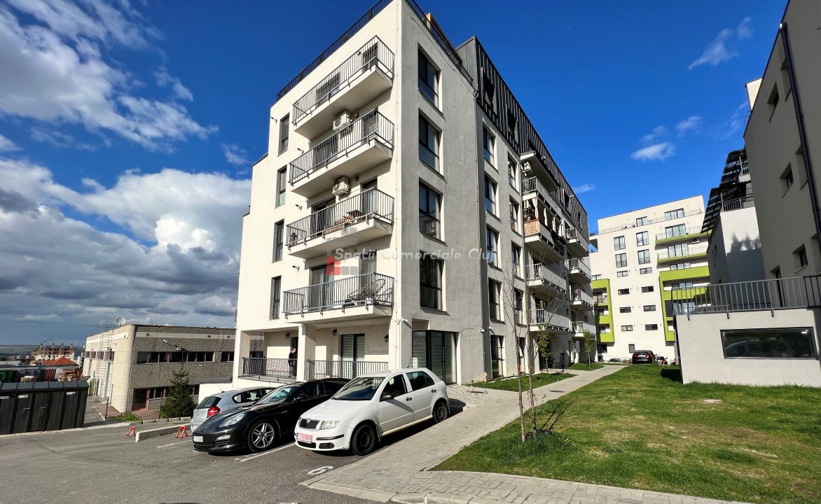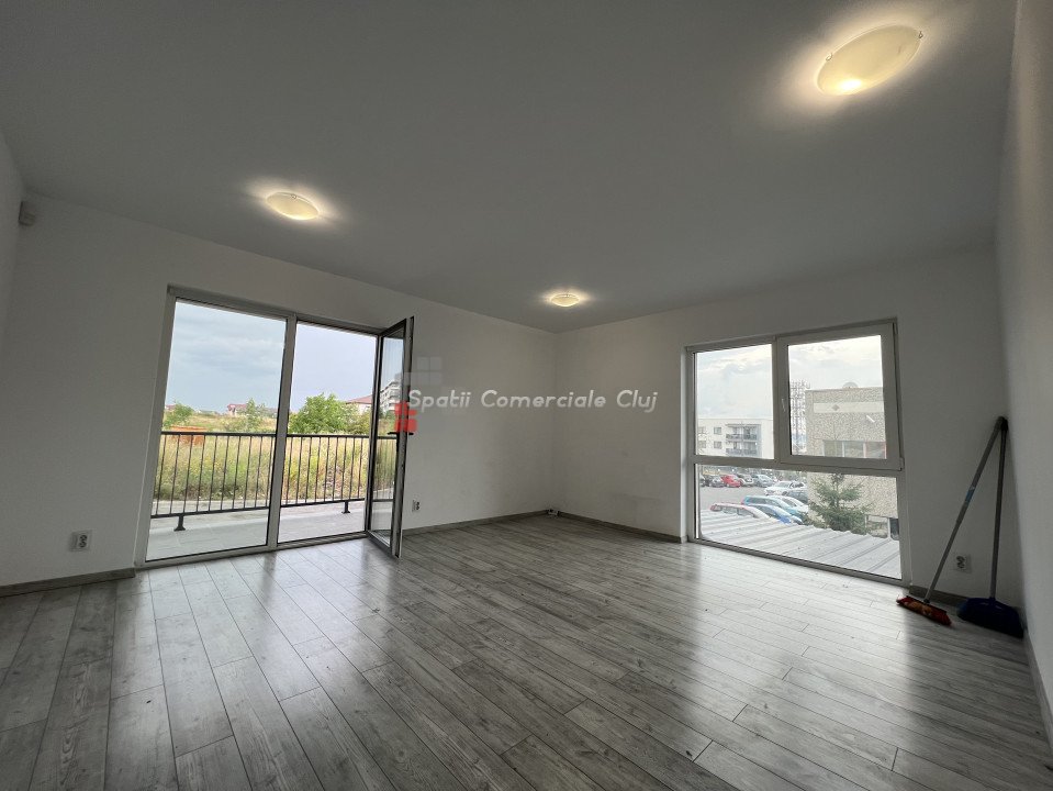 Spatii Comerciale Cluj va propune spre vanzare un spatiu pentru servicii cu suprafata utila 79mp in Europa, in spate la OMV - Nicolae Steinhardt. Accesul se face usor de pe Calea Turzii langa OMV sau Eugen Ionesco pe langa complexul Luminia. Spatiu de birouri in acte, poate fi usor recompartimentat, impartit in 2 spatii distincte fiecare cu baie proprie, avand doua intrari (din interiorul sau exteriorul cladirii). La acestea se adauga trei parcari exterioare, dintre care doua cu CF, situate in fata spatiului, la pret extra. Are centrala termica proprie cu incalzire in pardoseala. Imobilul este construit in 2019, din caramida pe structura de beton, este izolat si dispune de lift si interfon. Spatiul este potrivit pentru activitati comerciale, birou, servicii de proximitate sau locuinta.
