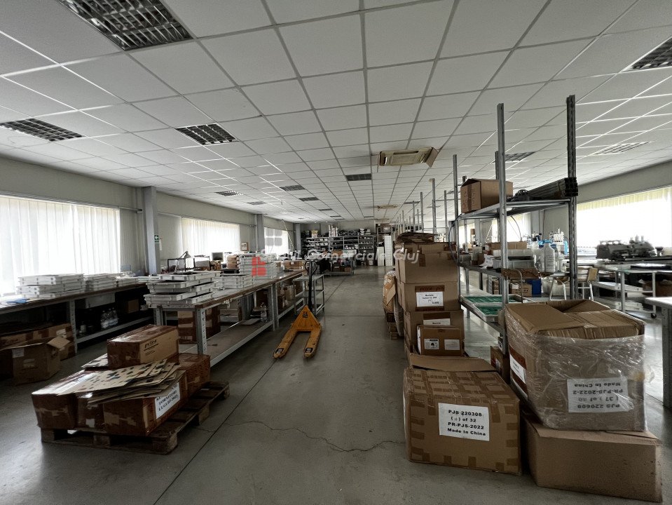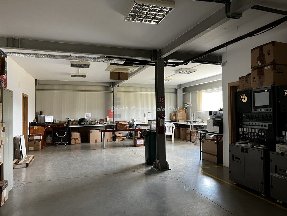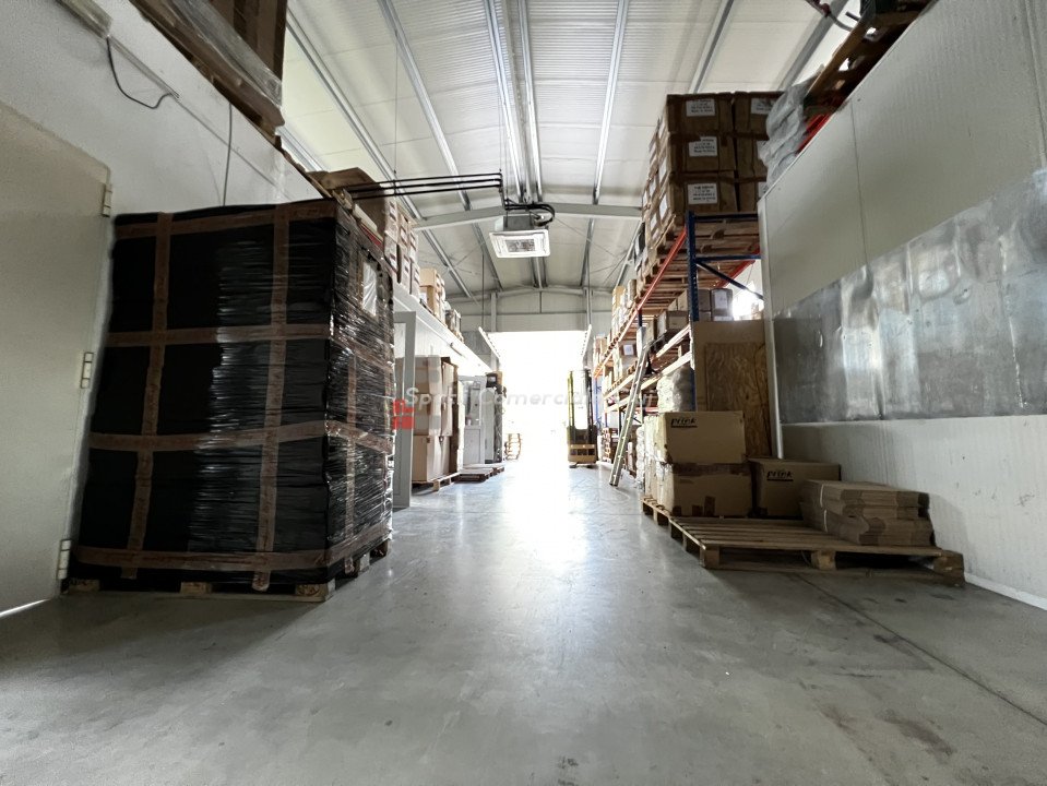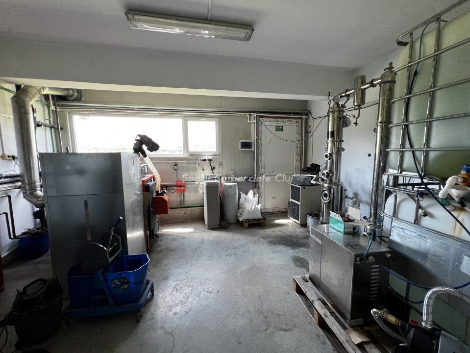 Depozit - Hala pe structura metalica cu panouri izolante, constructie 2017 situat in Baciu, zona industriala langa Prodvinalco. Descriere imobil: -imobil hala industriala pe structura metalica cu panouri izolante 10cm, structura proiectata pt a turna placa de beton intre parter si mezanin -suprafata totala teren 1863mp, imprejmuit, curte pavata cu rigole de scurgere, locuri de parcare, poarta de acces automata -suprafata utila la sol 631.03mp (sala de mese, grupuri sanitare b/f, 2 birouri separte, zona de productie cu tavan casetat si zona de depozitare) -suprafata utila supanta 137.61mp (4 birouri, vestiar b/f fiecare cu dusuri si grupuri sanitare) -inaltime la streasina 6m, la cornisa 7,5m , usa sectionala de acces camion Caracteristici generale: -bransament de curent trifazic 50kw - centrala pe peleti si ventiloconvectoare pentru incalzire -panouri fotovoltaice 30kw -10 panouri pentru apa calda -foraj put pentru sursa de apa cu pompa de filtrare -fosa septica pentru canalizare Imobilul detine AUTORIZATIE ISU Pret negociabil.